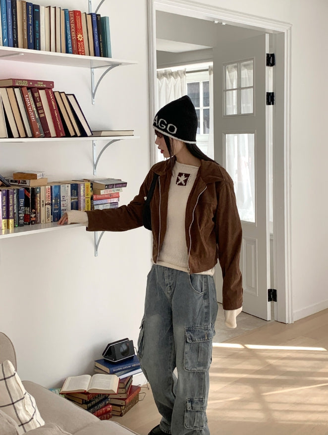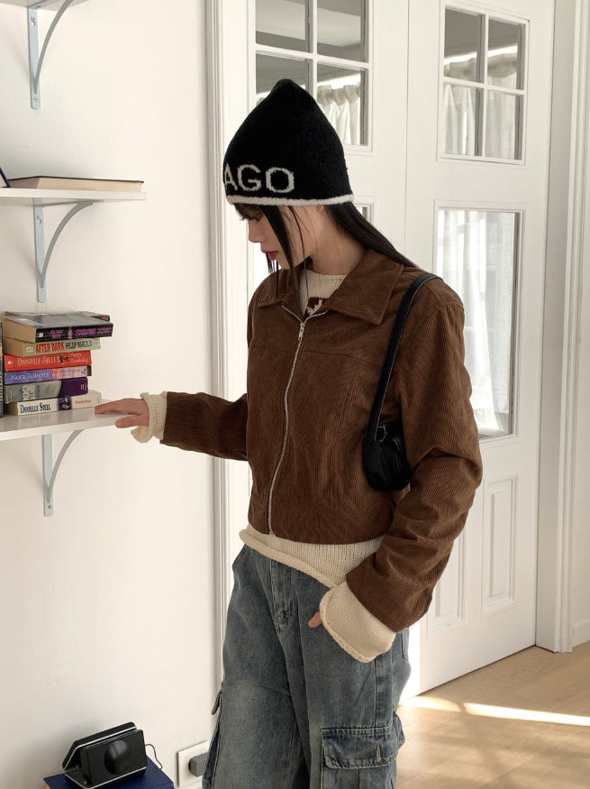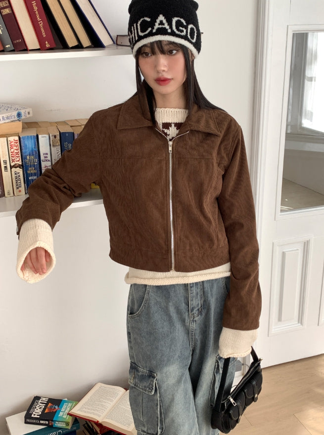 ヒランコーデュロイ襟付きクロップドブルゾンジャケット