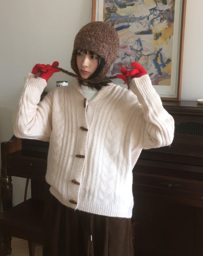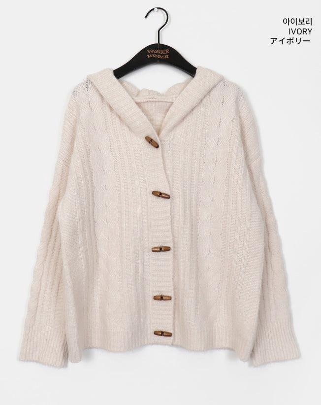 Hinmo Cable Duffle Button Hood Knit Cardigan