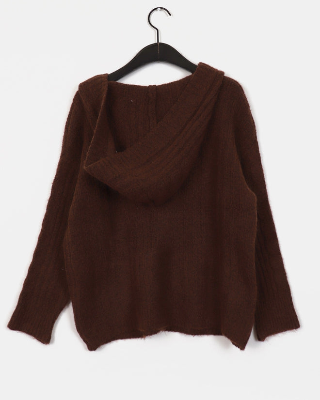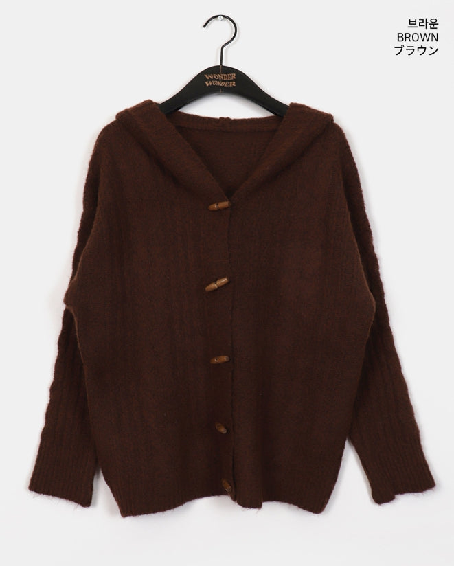 ヒンモプレッツェルトッポッキボタンフード付きニットカーディガン
