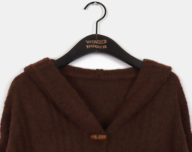 ヒンモケーブルダッフルボタンフード付きニットカーディガン