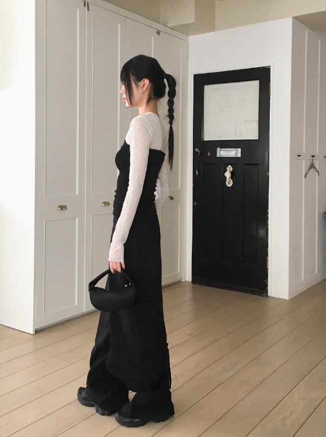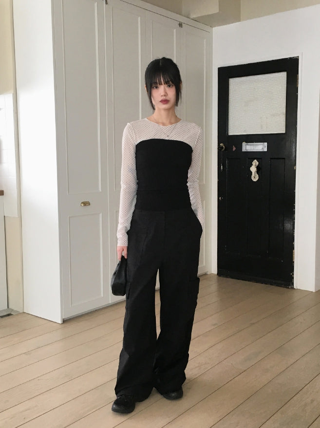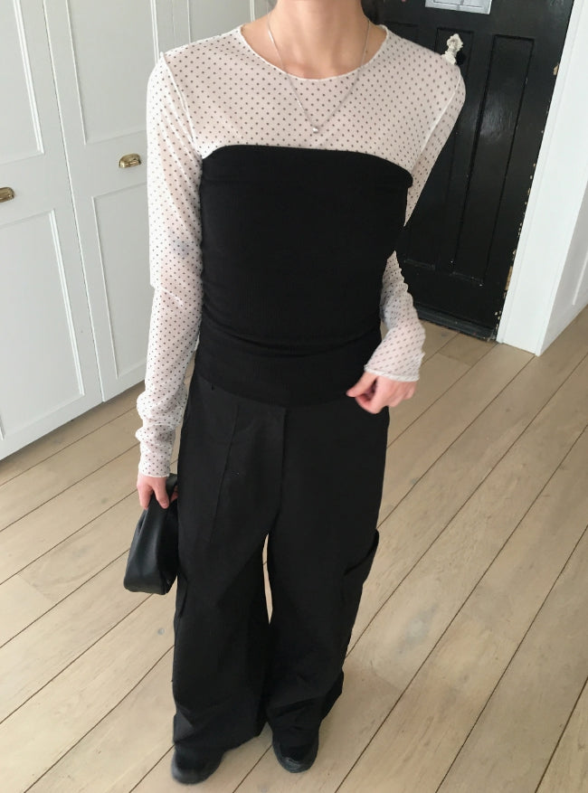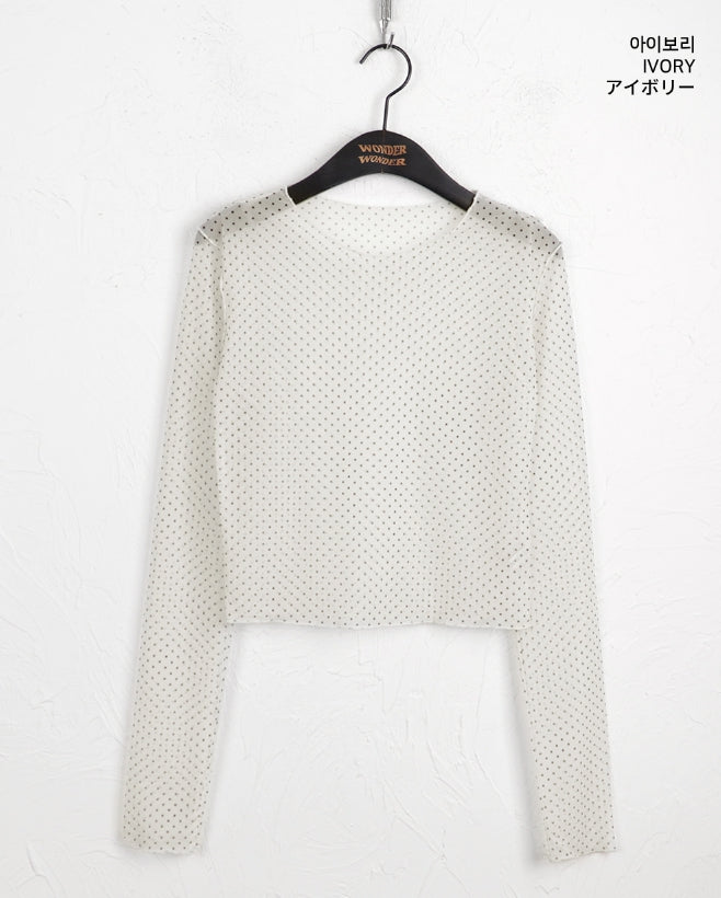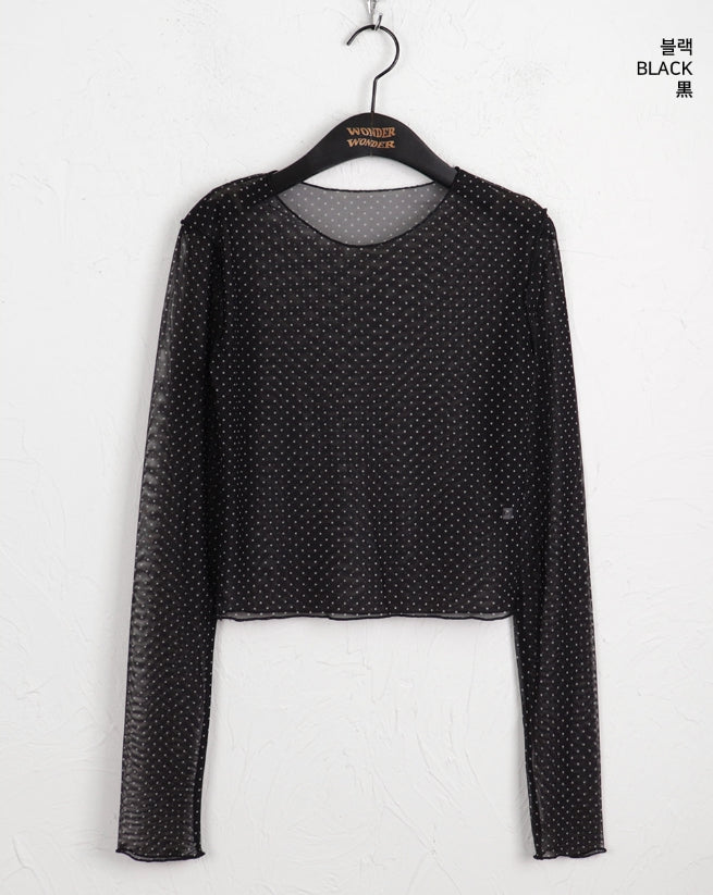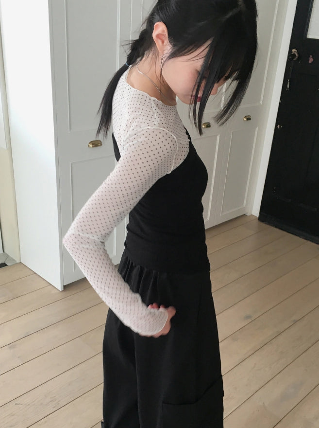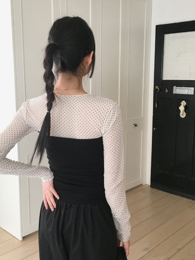 His dot see-through layered inner long sleeve T-shirt