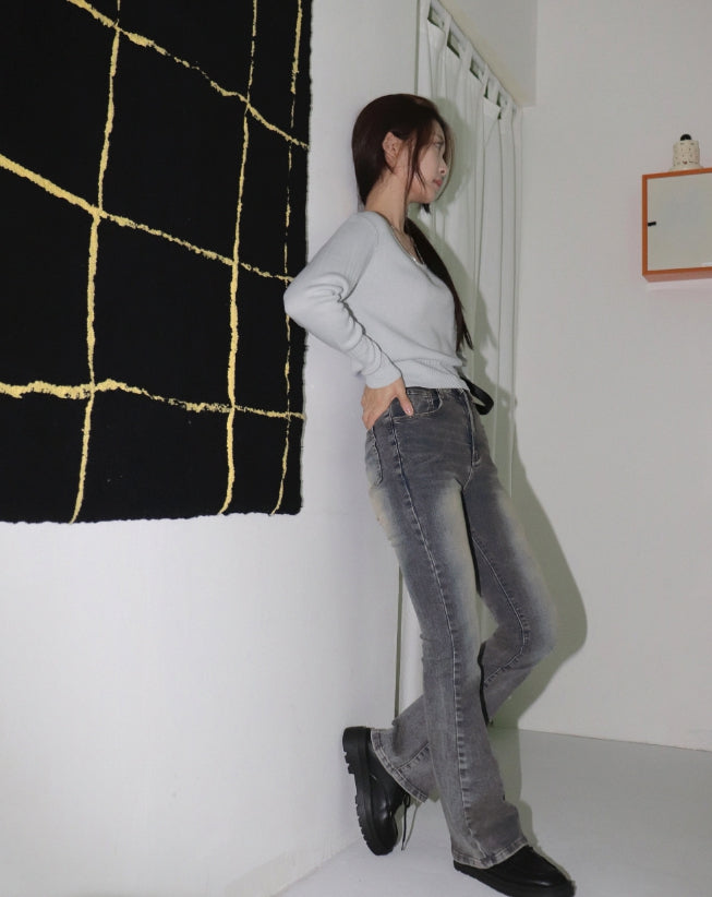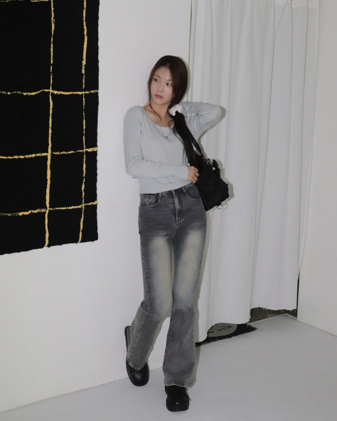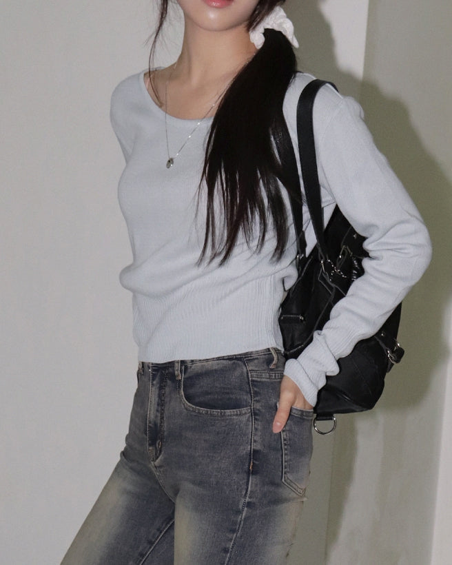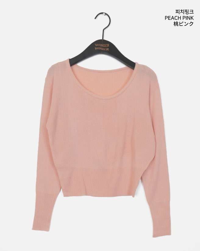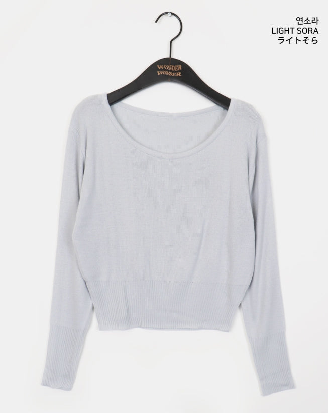 Hon T-shirt Pastel U-neck Round Cropped Knitwear
