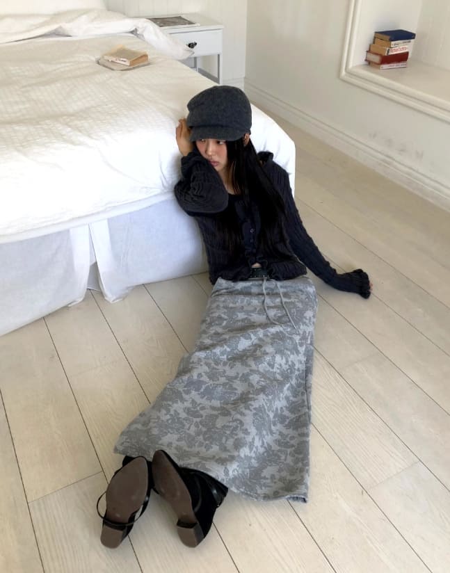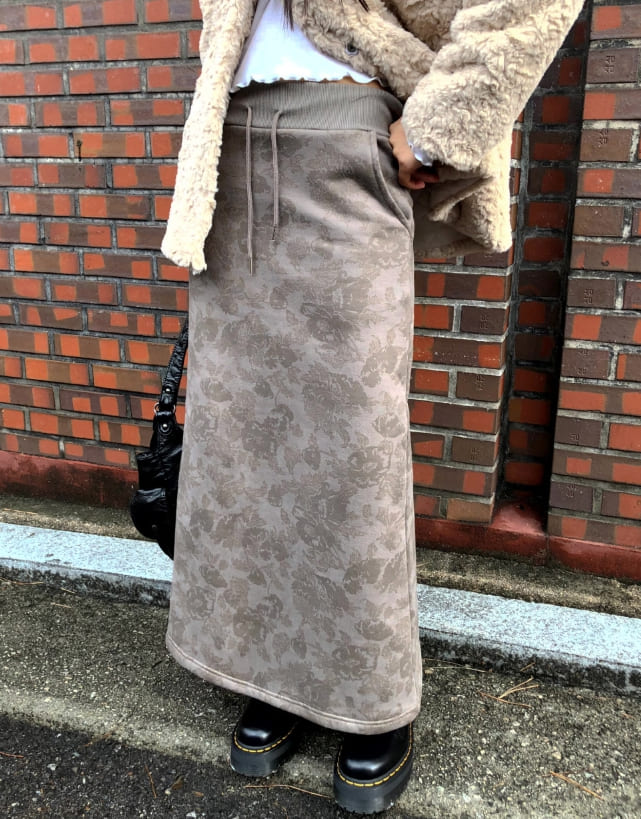 Hora Flower Brushed Long Skirt