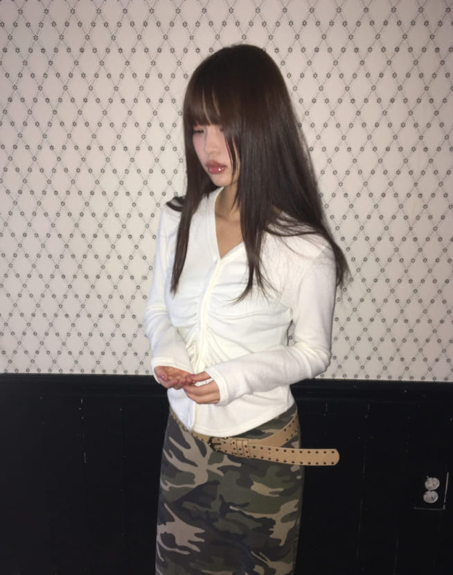 Hori shirring brushed cardigan