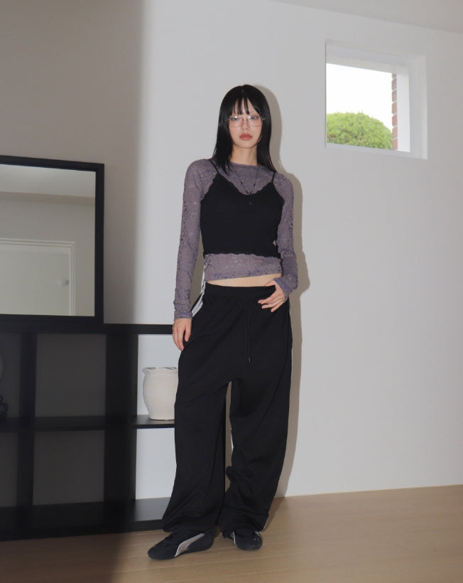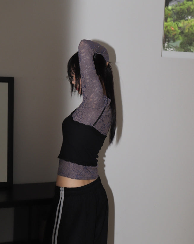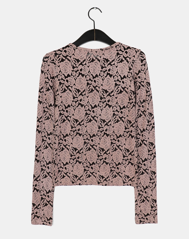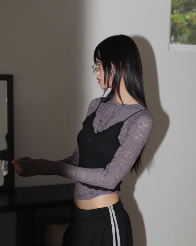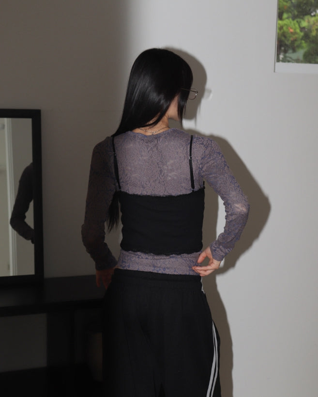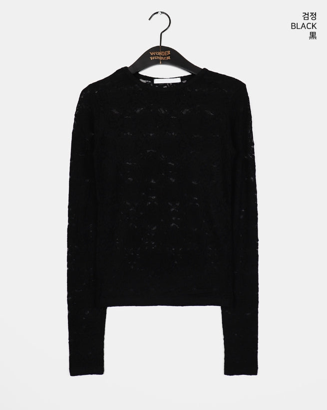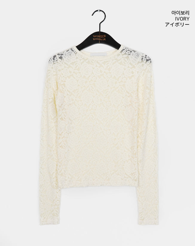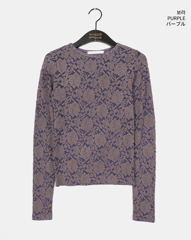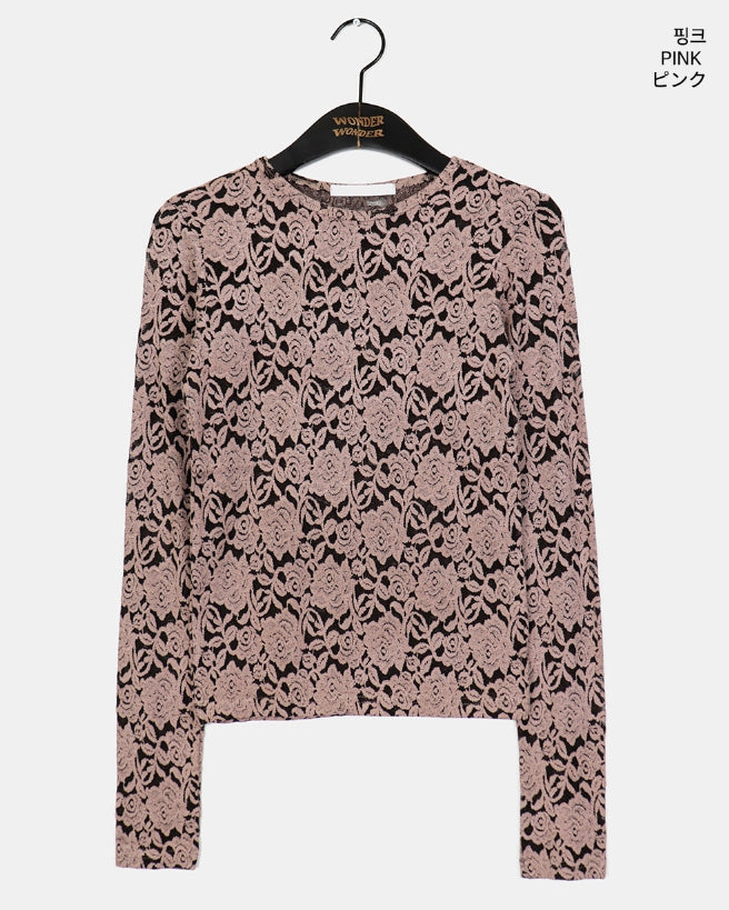 ゼピンローズエンボッシングツートンシースルー長袖Tシャツ