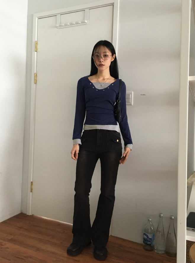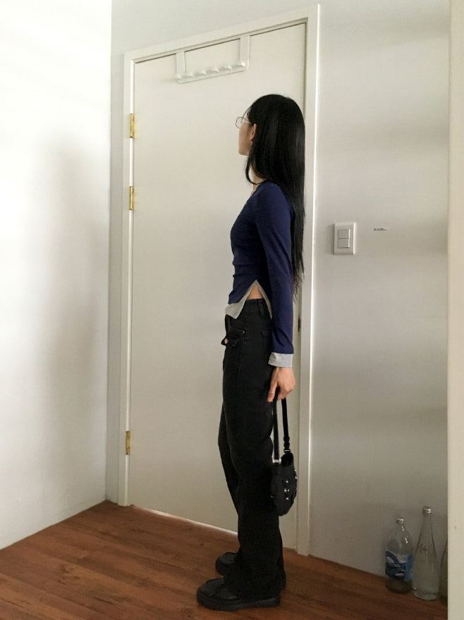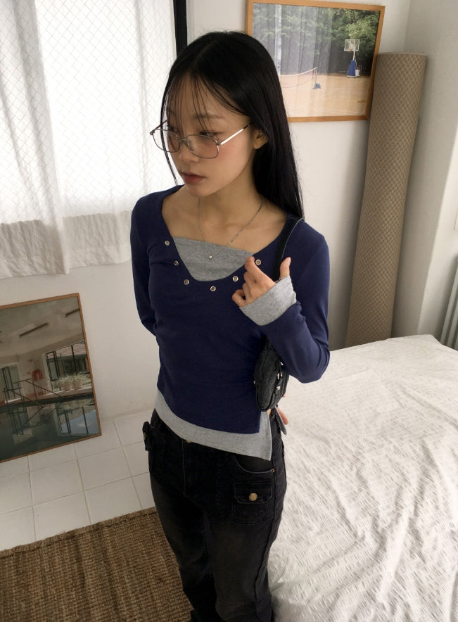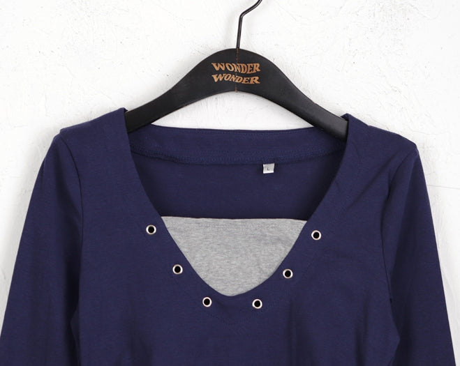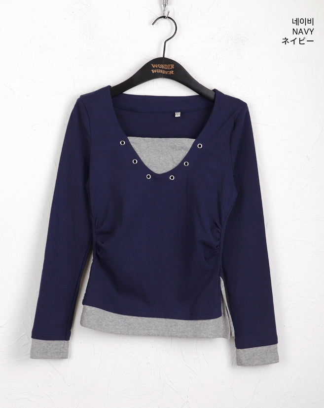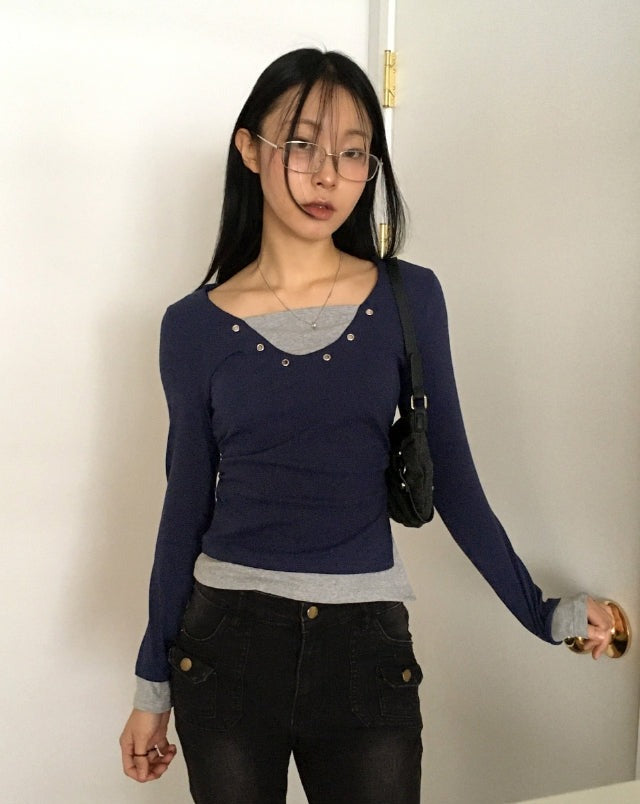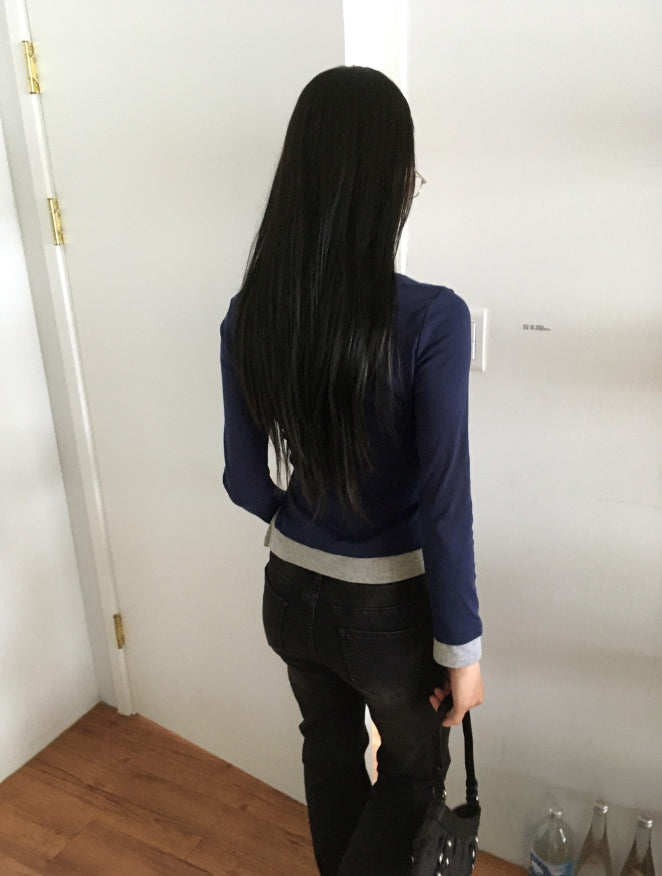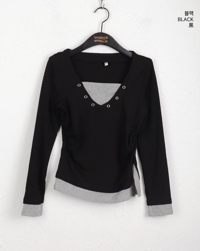 Jetty Layered Color Matching V-Neck Long Sleeve T-Shirt