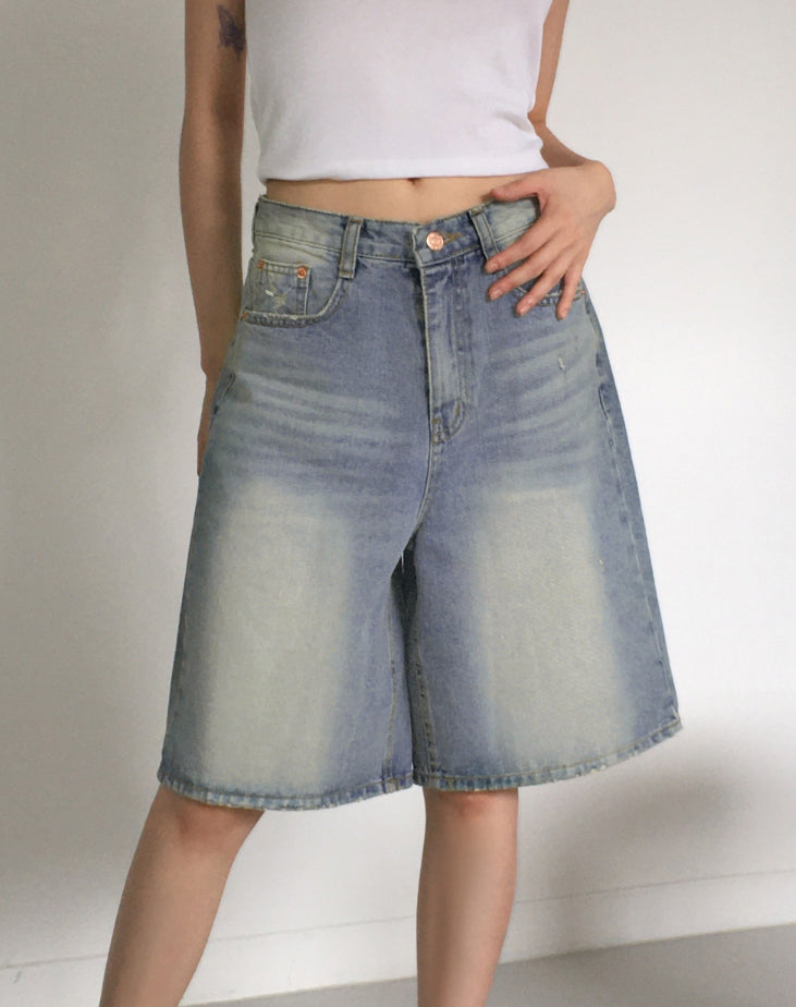 Kaeon Vintage Washed Denim Half Bermuda Pants
