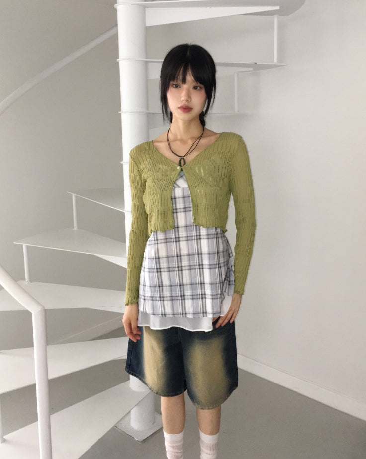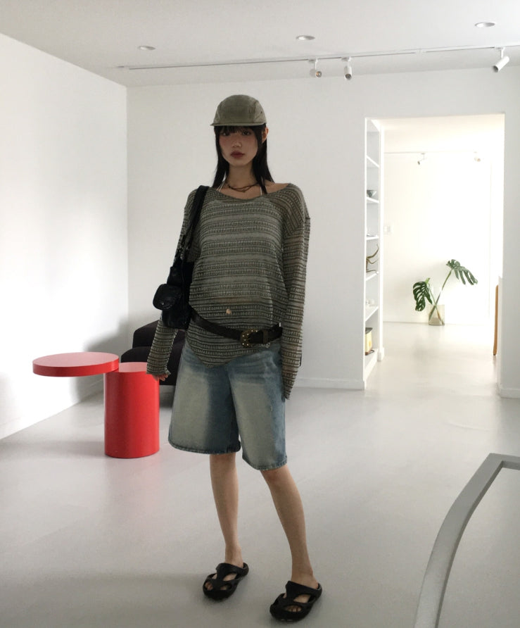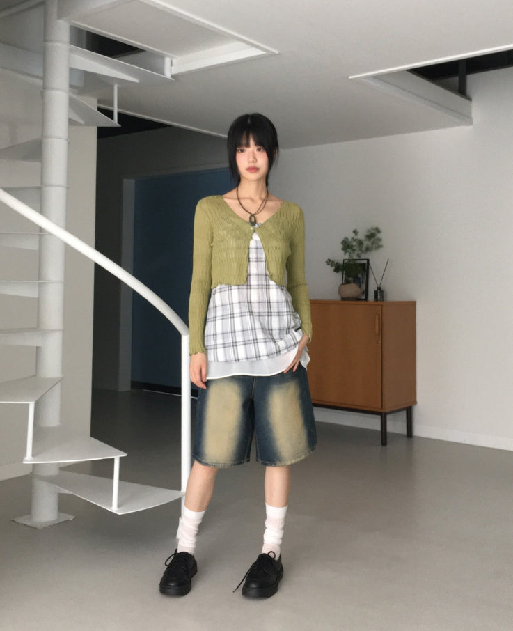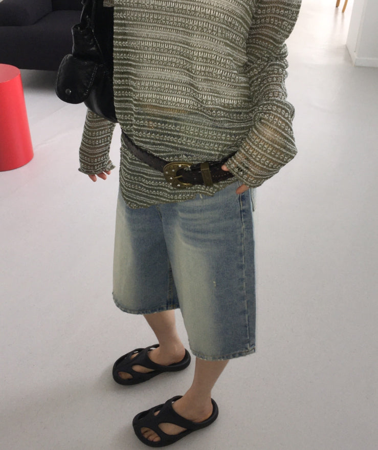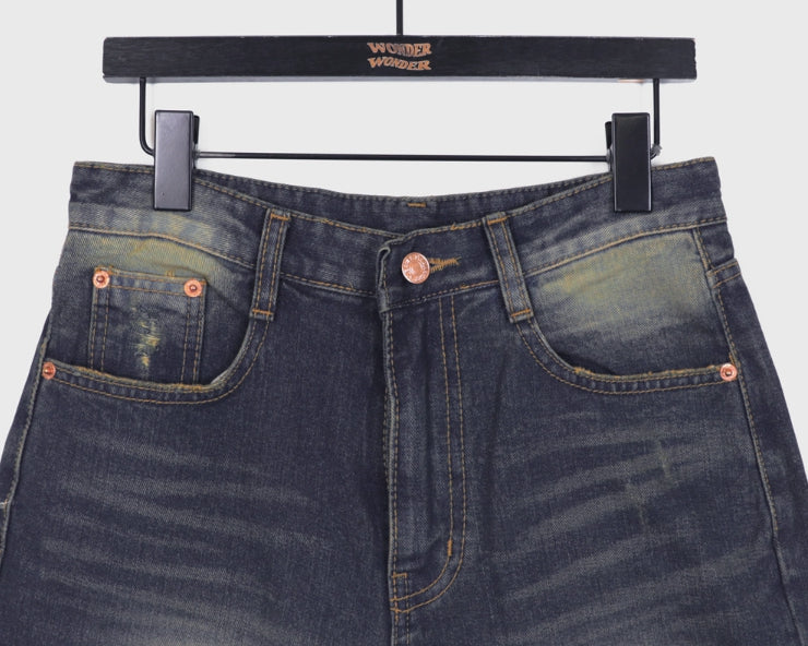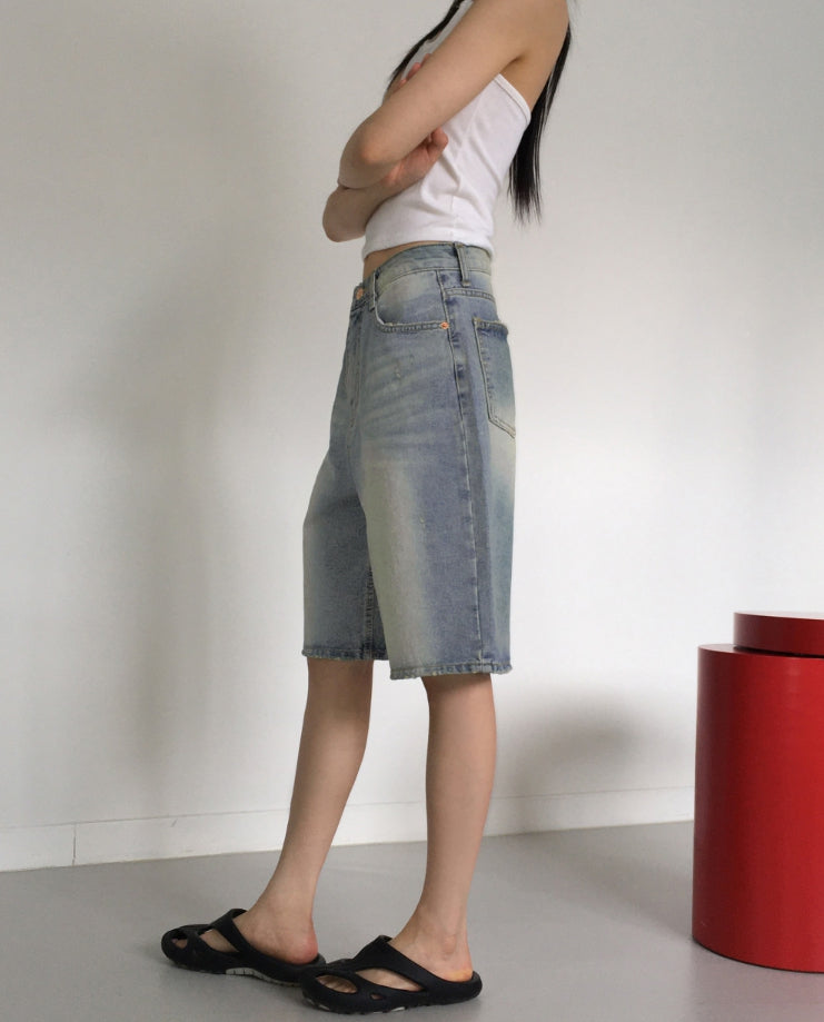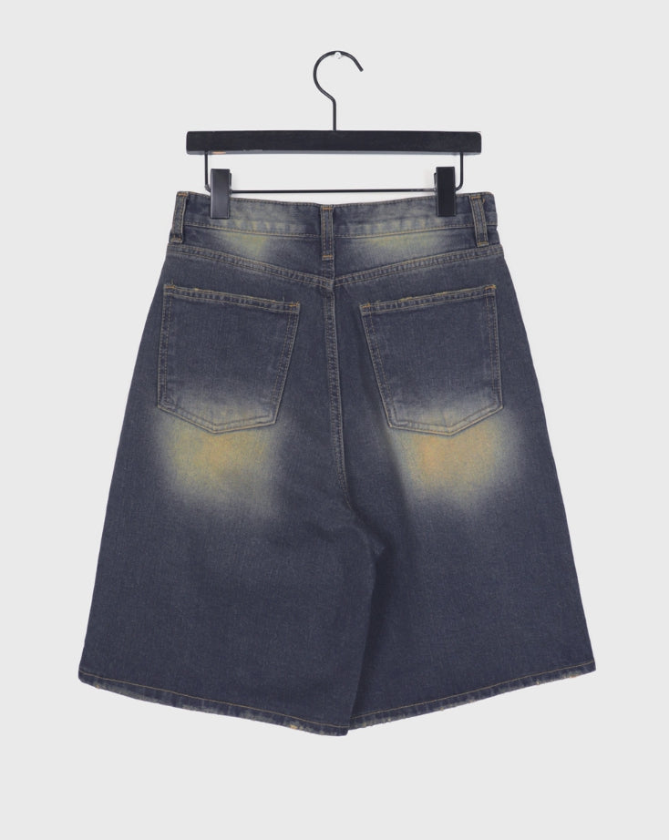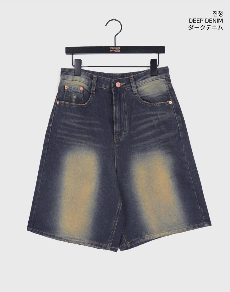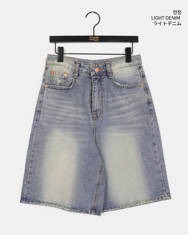 ケオンビンテージウォッシュ加工デニムハーフバミューダパンツ