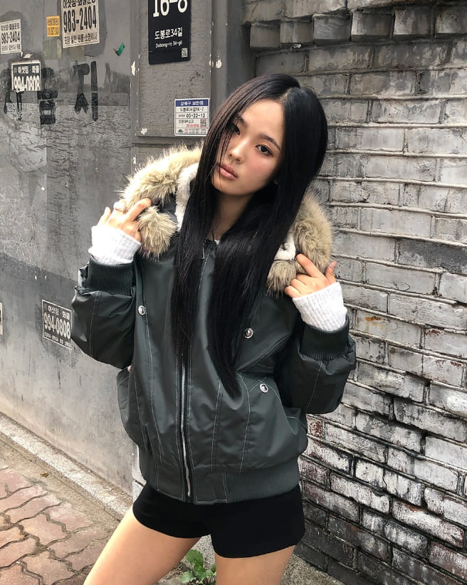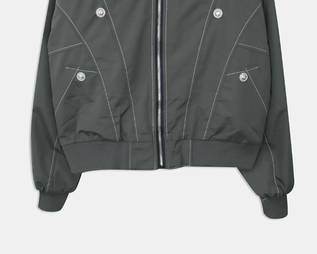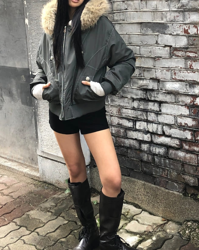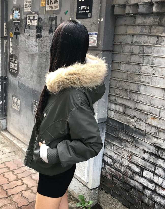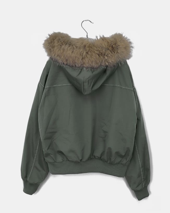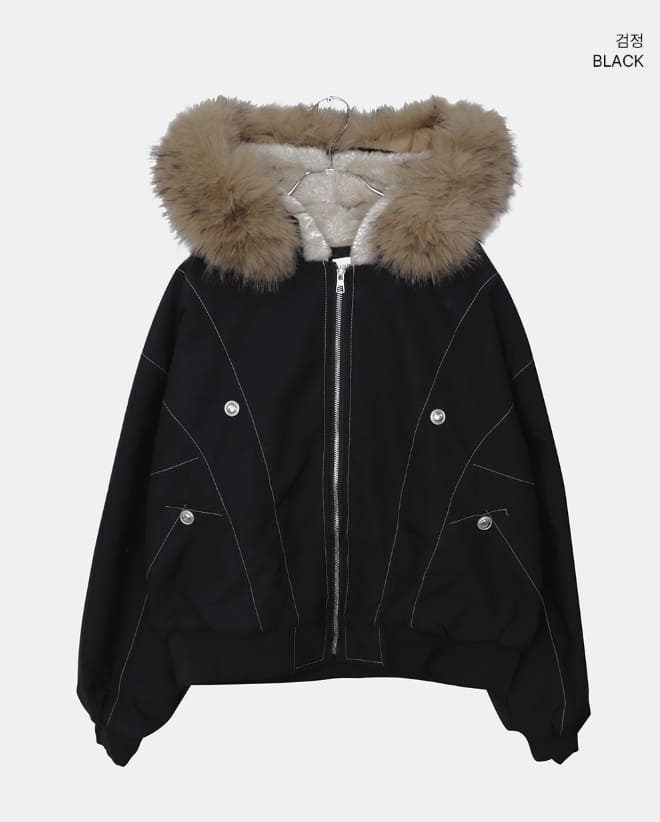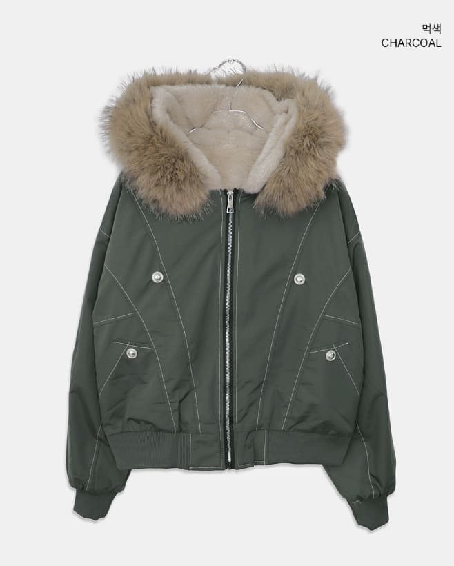 カイトスナップボタンステッチオーバーフィットファーボンバージャケット