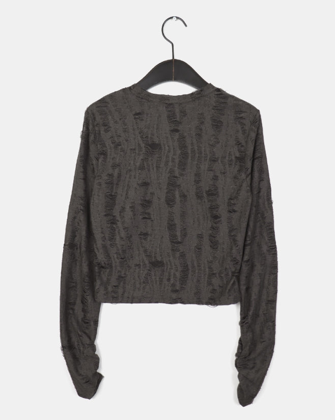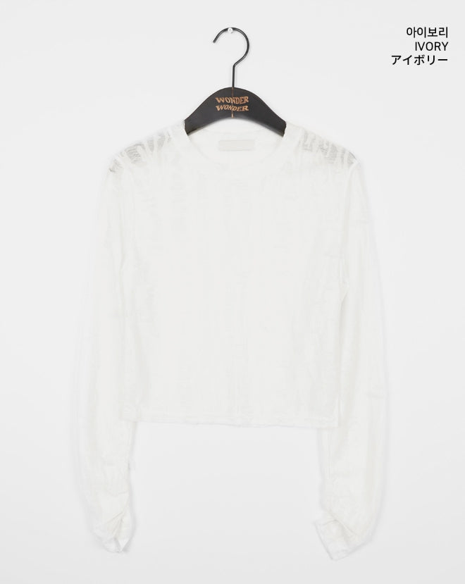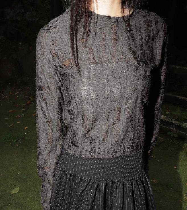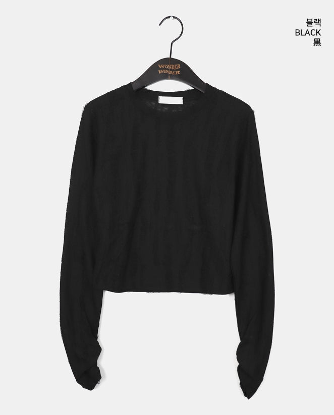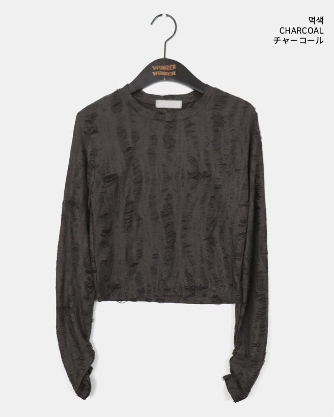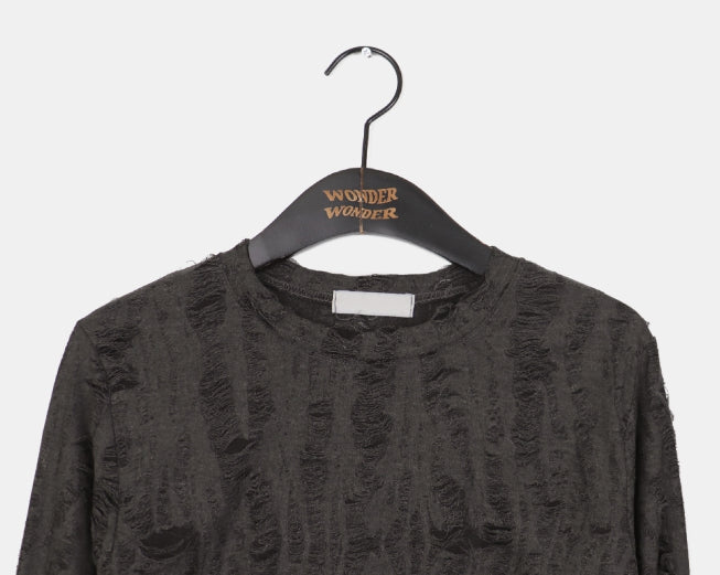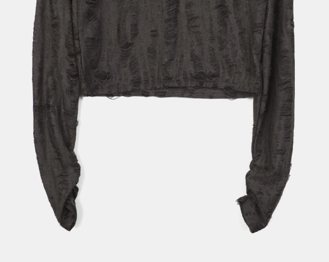 Kakon Damage Interseasonal Shirring Round Long Sleeve T-Shirt