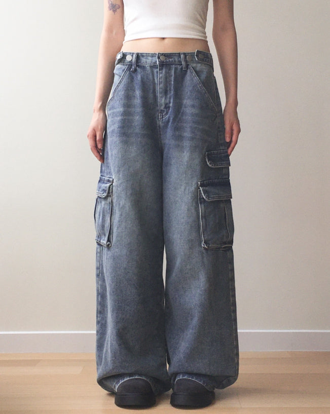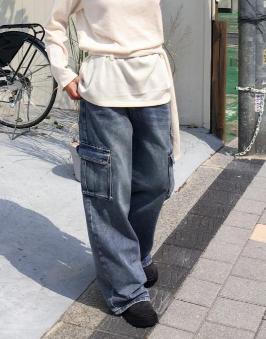 Keple Bijo Cargo Pocket Wide Denim Pants