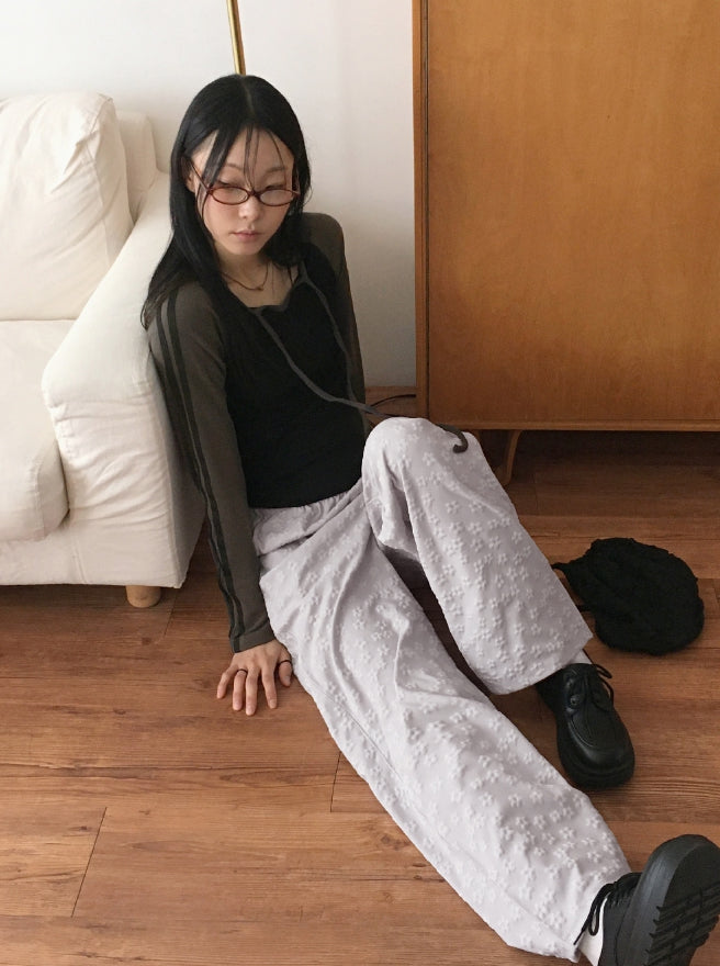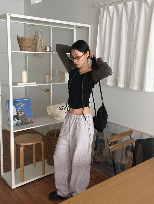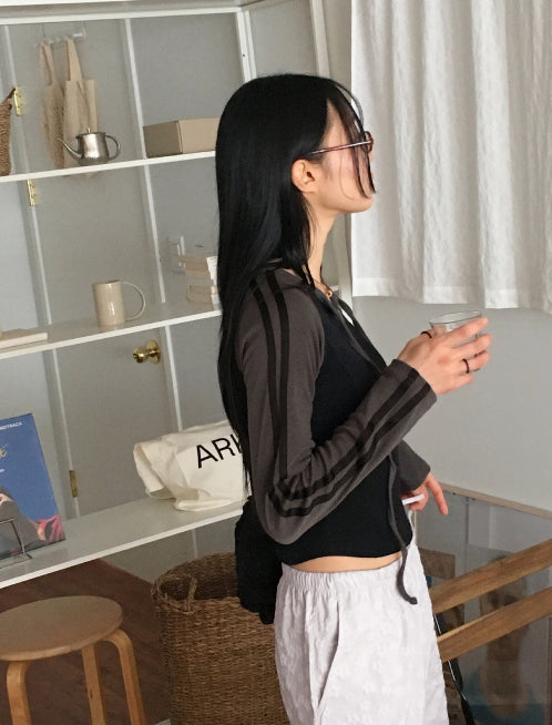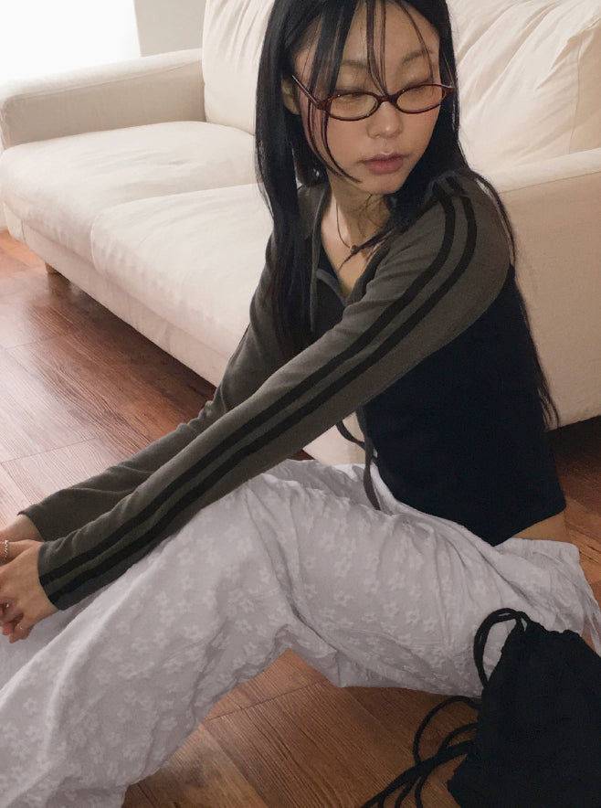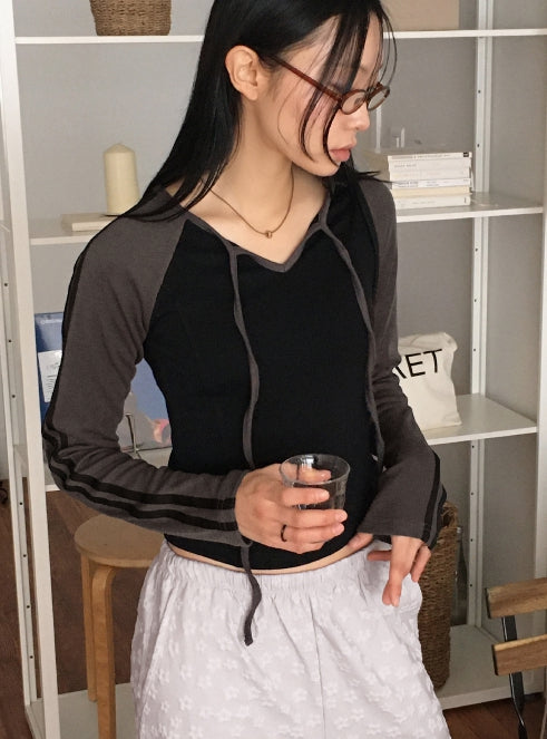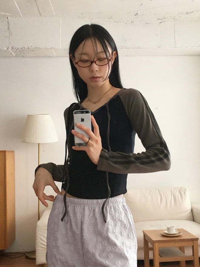 Kibe colored two-tone tape strap long-sleeved T-shirt