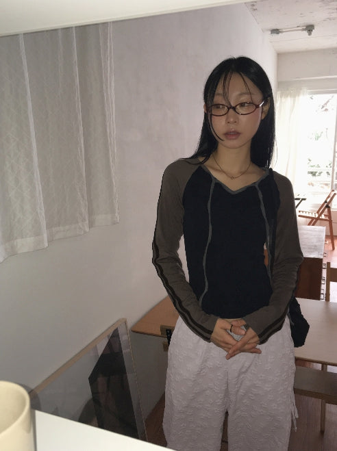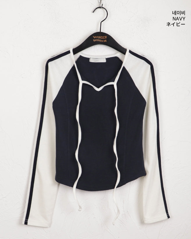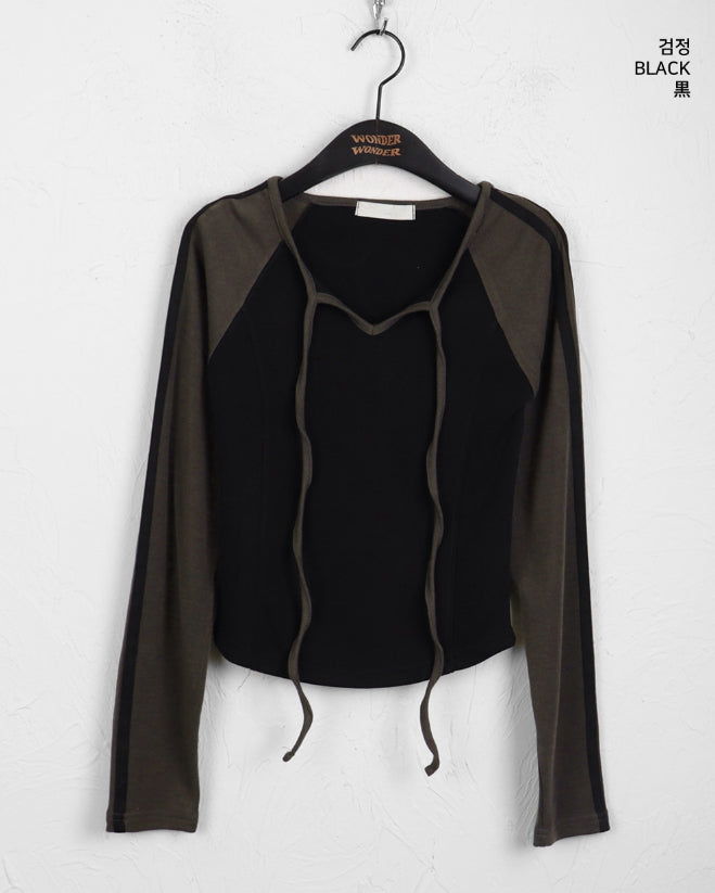 Kibe color matching two-tone tape strap long-sleeved T-shirt