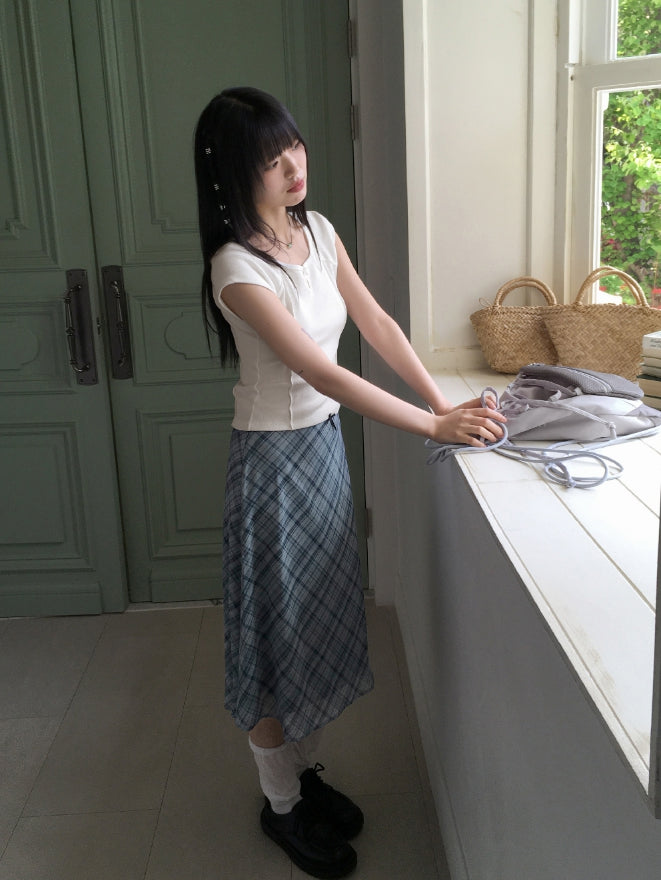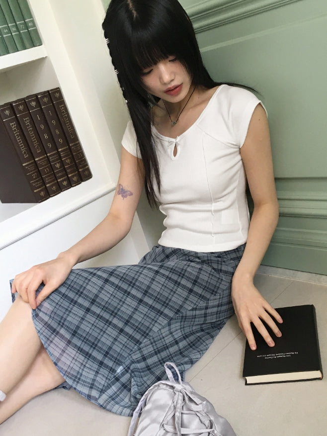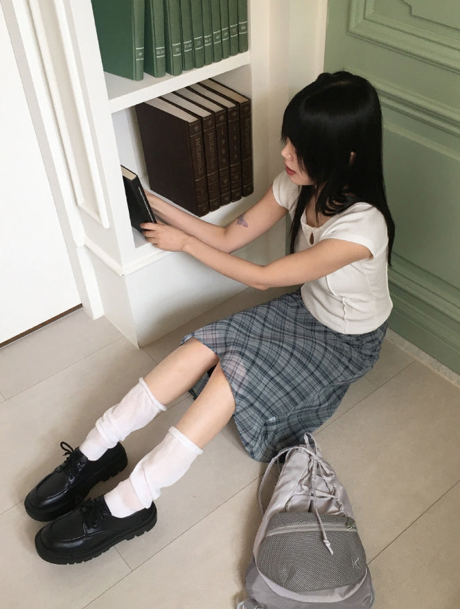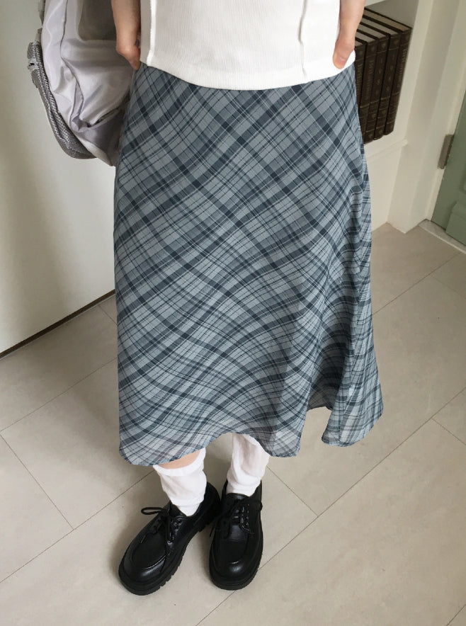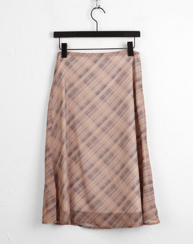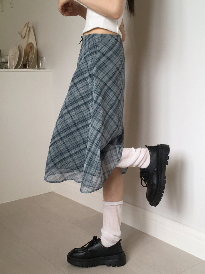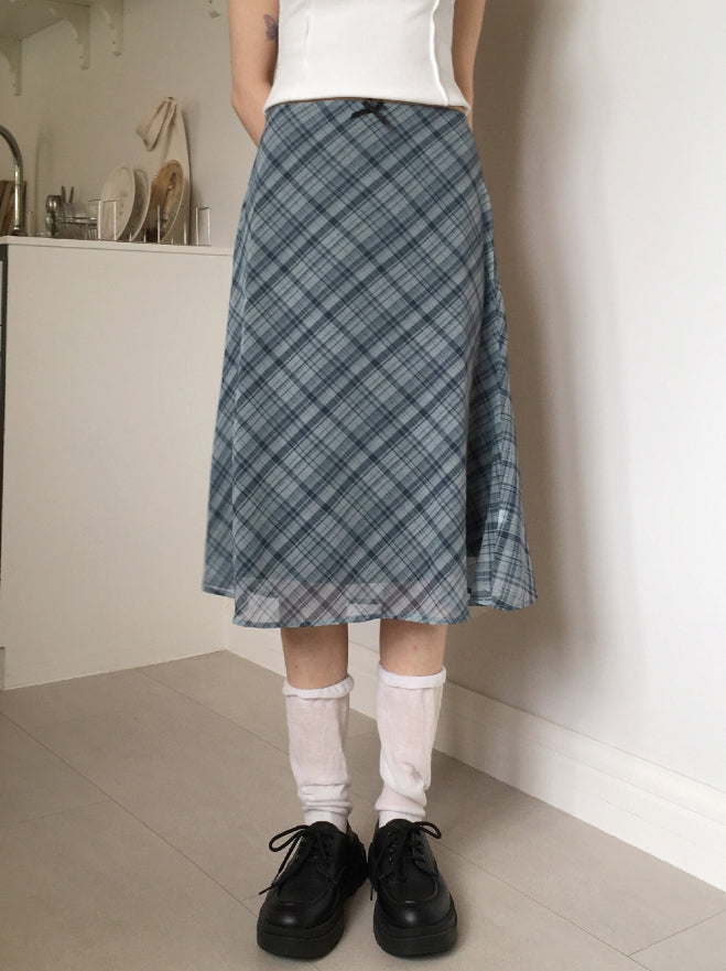 Keebel Geek Ribbon Check Chiffon Midi Skirt