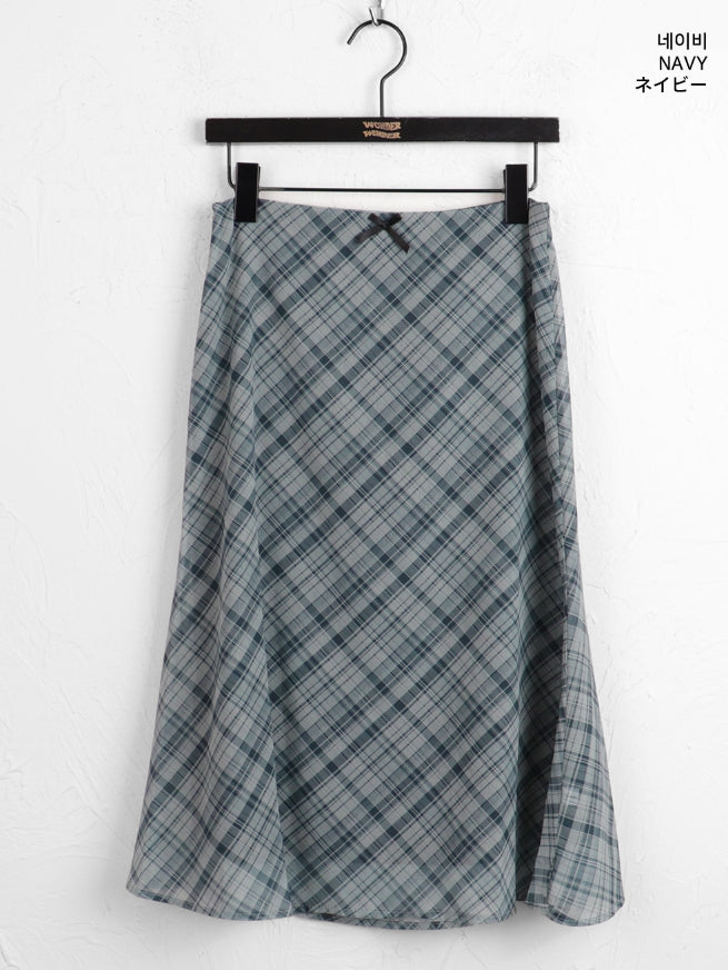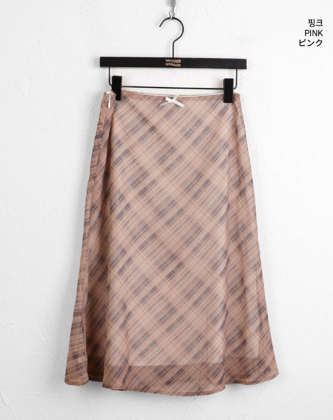 キベルギークシックリボンチェックシフォンミディスカート