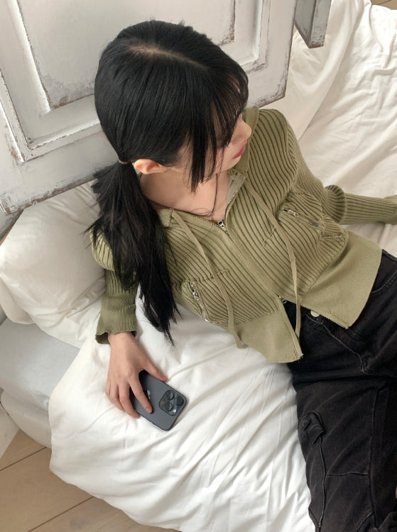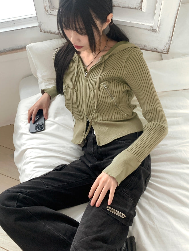 キールビンテージファスナーポケットリブジップアップ