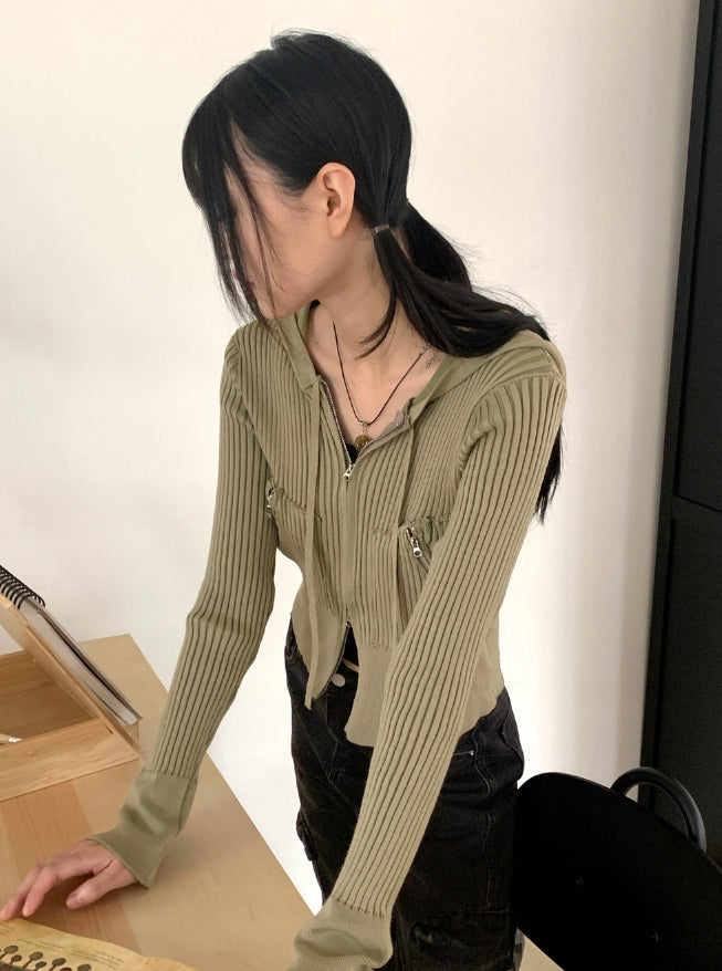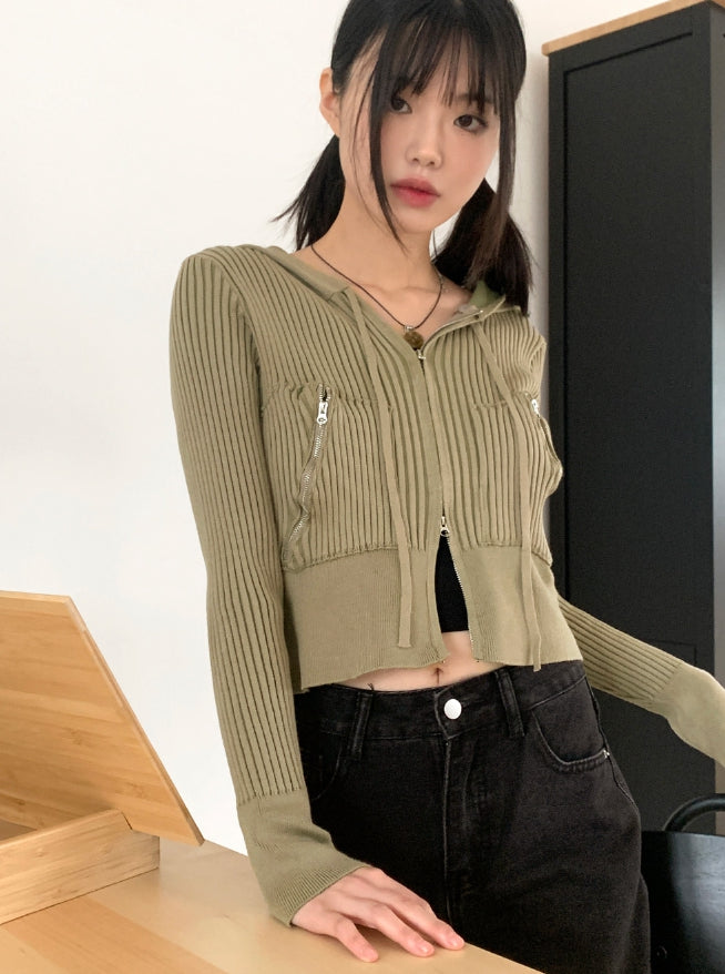 Kiel Vintage Zipper Pocket Ribbed Zip Up