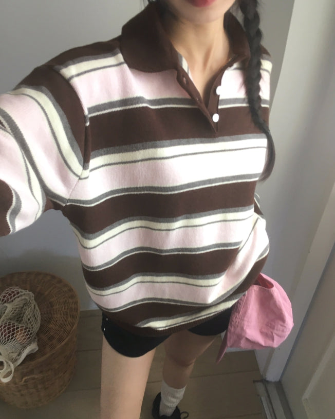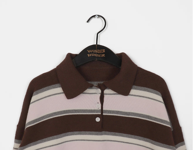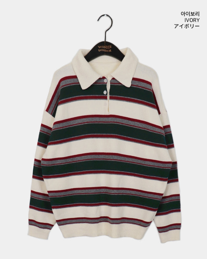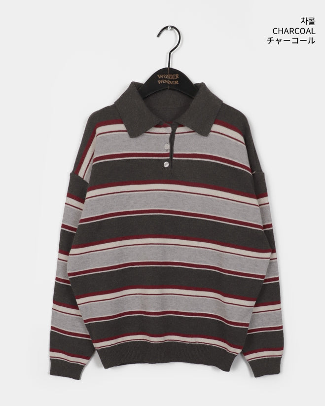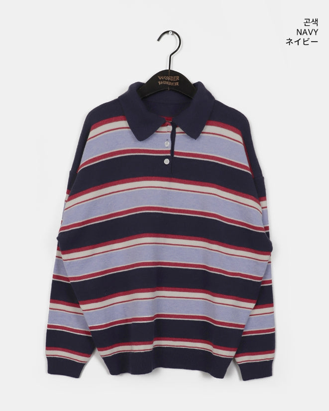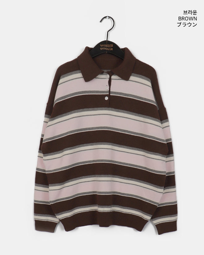 Kippek Stripe Color Matching PK Collar Knit