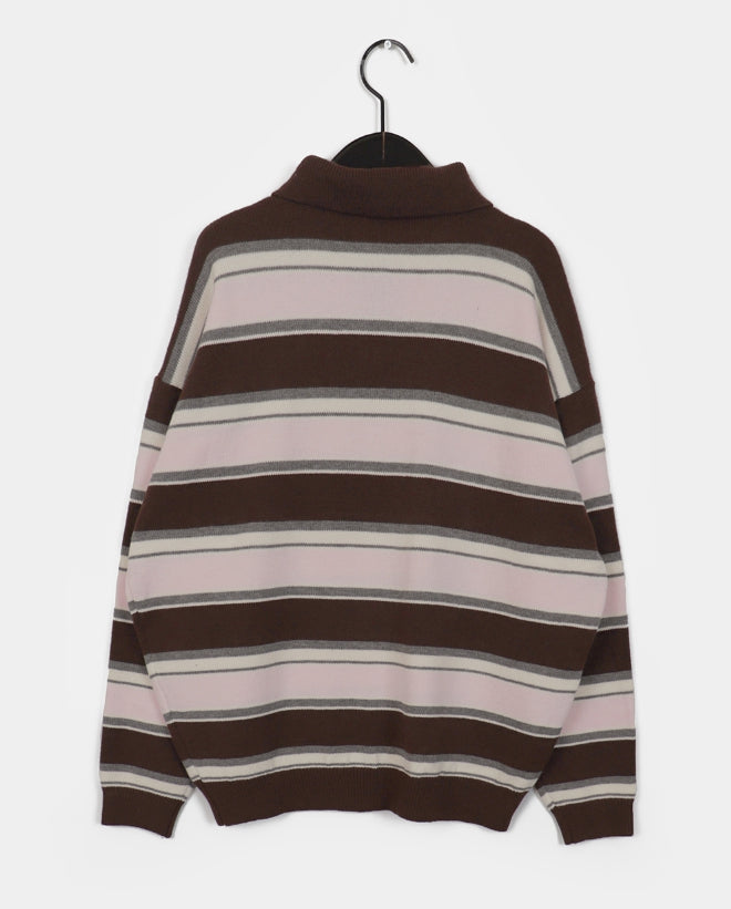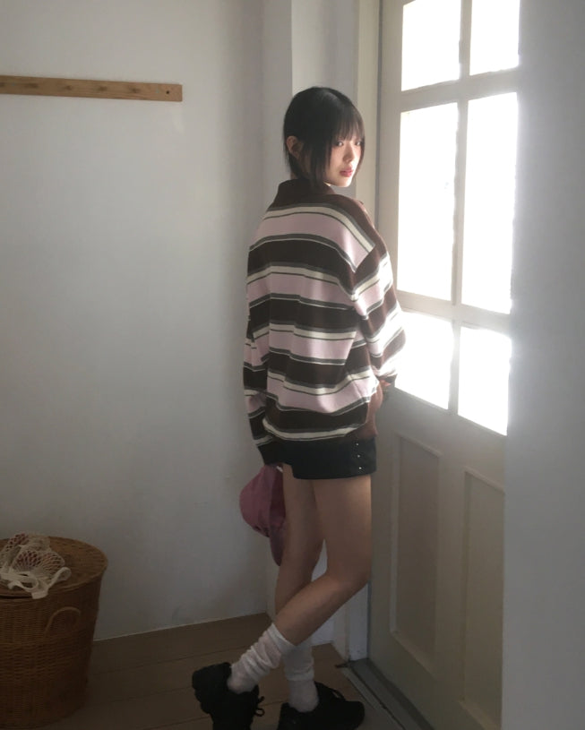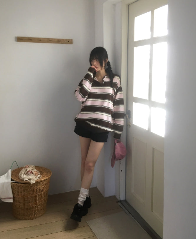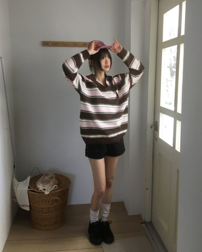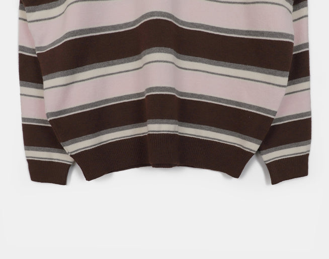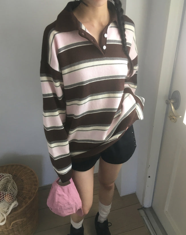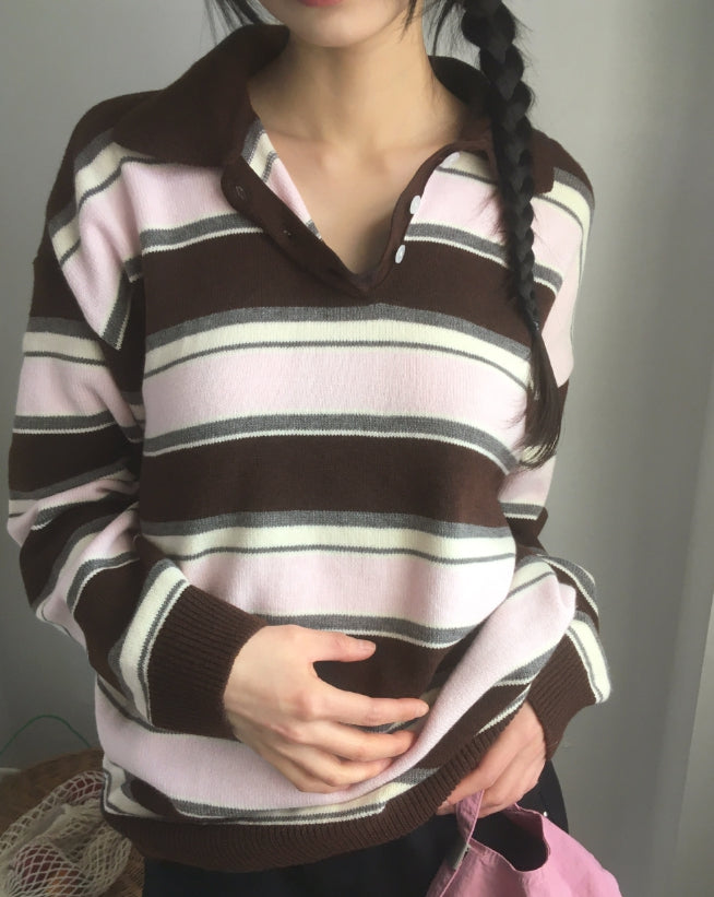 Kippek Stripe Color Matching PK Collar Knit
