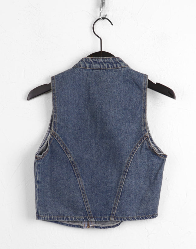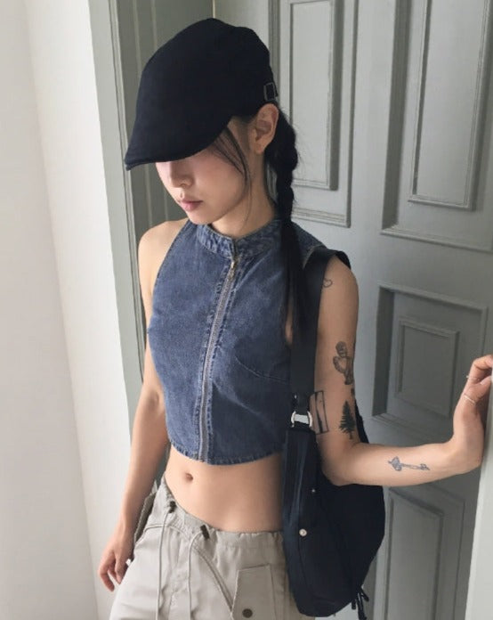 Knitter Festival Denim Unbalanced Zipper Snap Denim Zip-Up