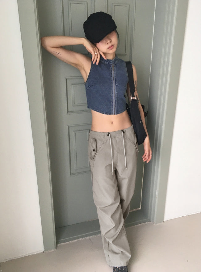 ニーターフェスティバルデニムアンバランスファスナースナップデニムジップアップ