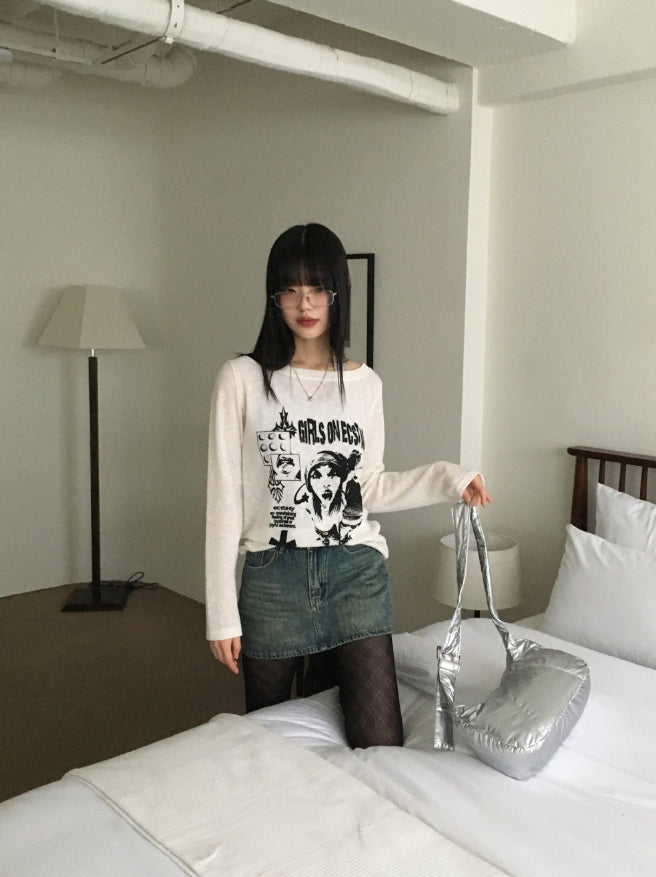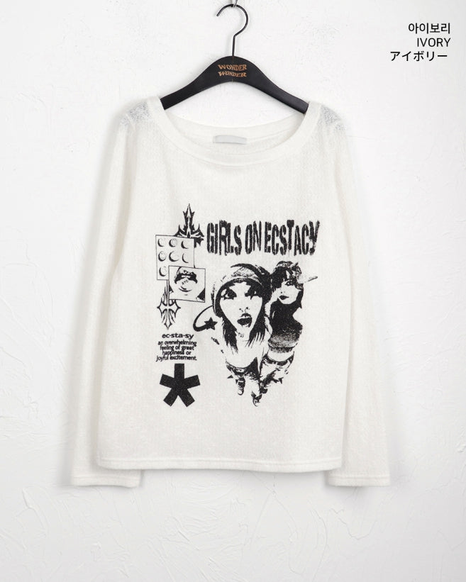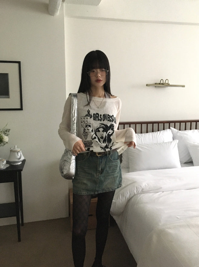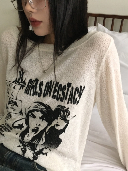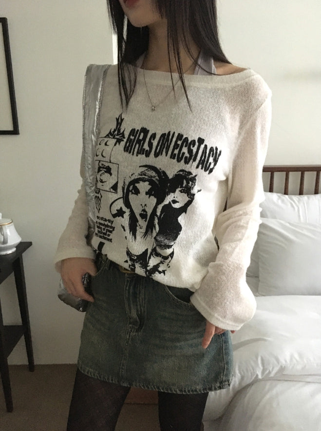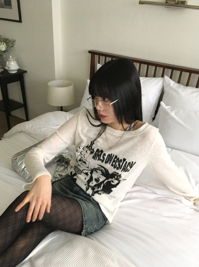 Koga See-Through Printed Boat Neck Knitwear T-Shirt