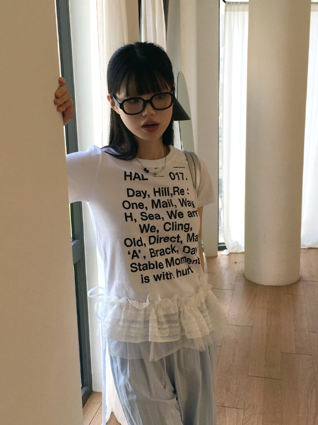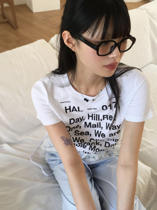 Komti Lettering Printed Semi-crop short-sleeved T-shirt