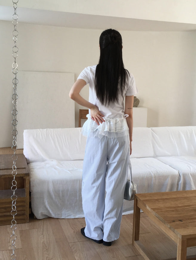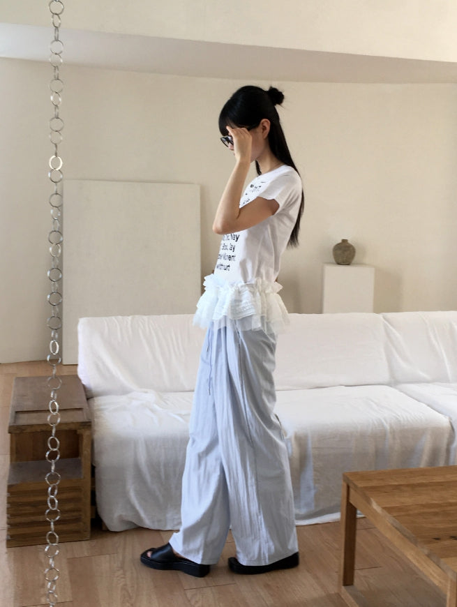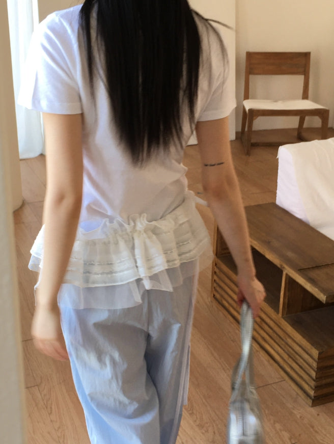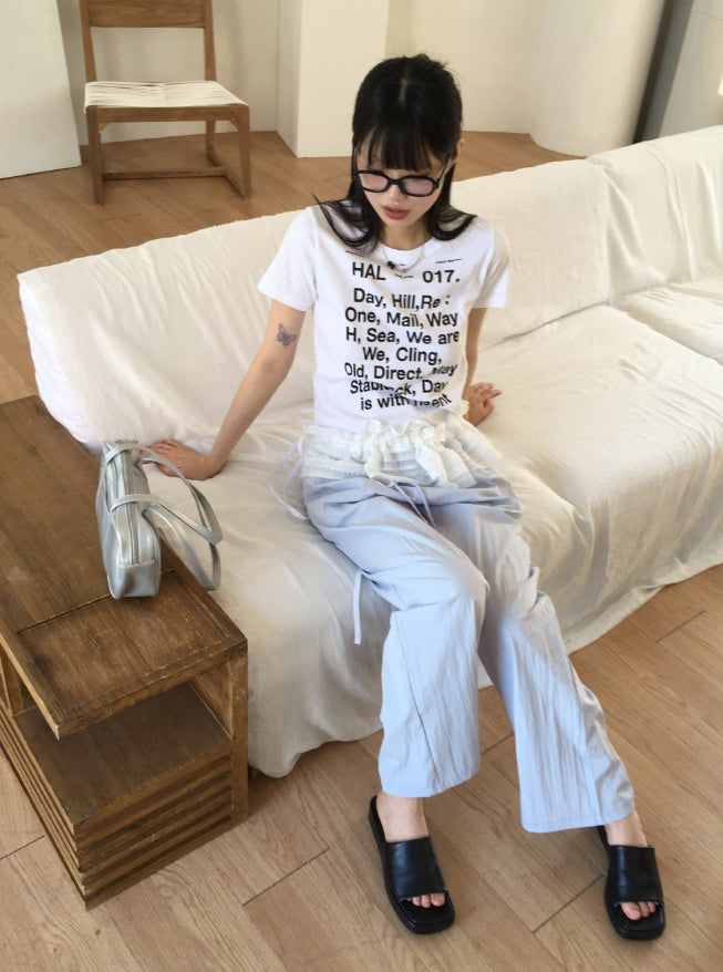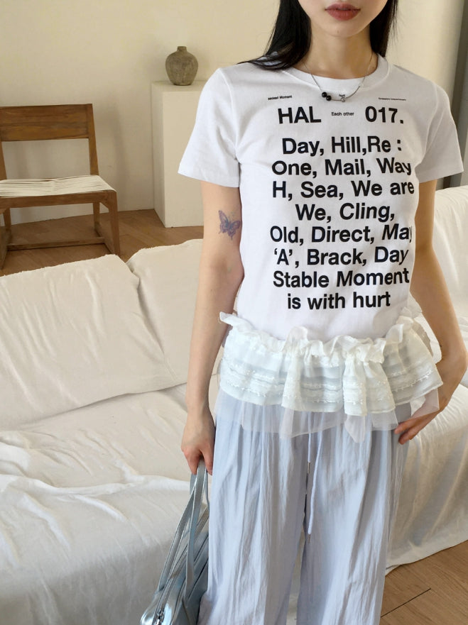 コムティレタリングプリンティングセミクロップ半袖Tシャツ
