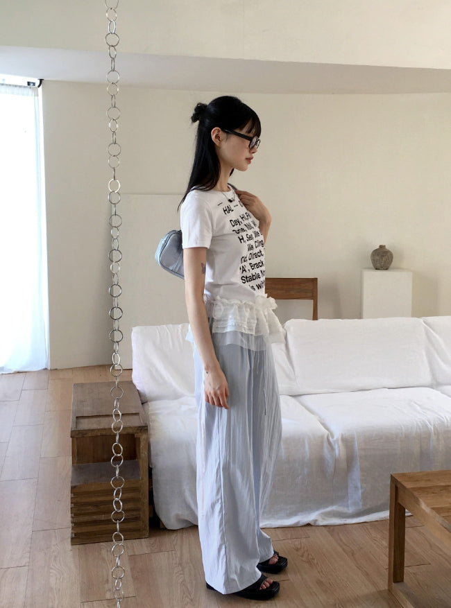 Comte Lettering Printed Semi-crop short-sleeved T-shirt