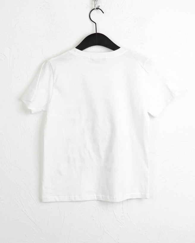 コムティレタリングプリントセミクロップ半袖Tシャツ