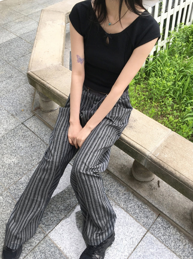 -ONE SIZE (ウエスト(ストッパー)76 ヒップ104 股上33 股下74 もも周り68 裾周り58 総丈107)