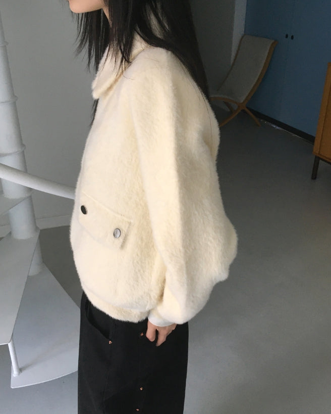 Lawson Flap Pocket Angora Fur Collar Zip-up