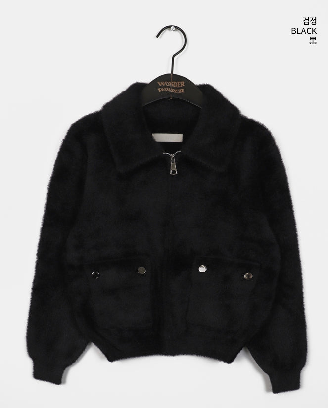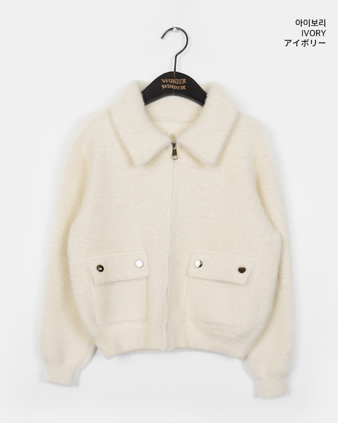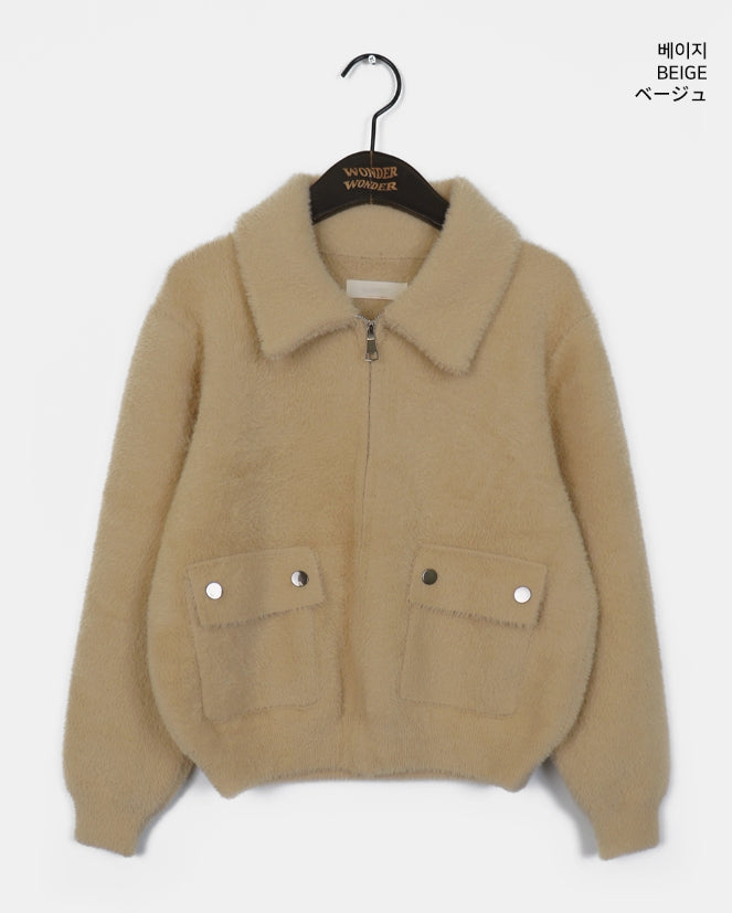 ラウソンフラップポケットアンゴラファー襟付きジップアップ