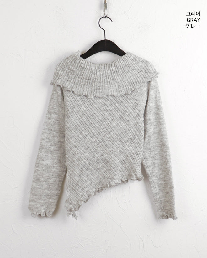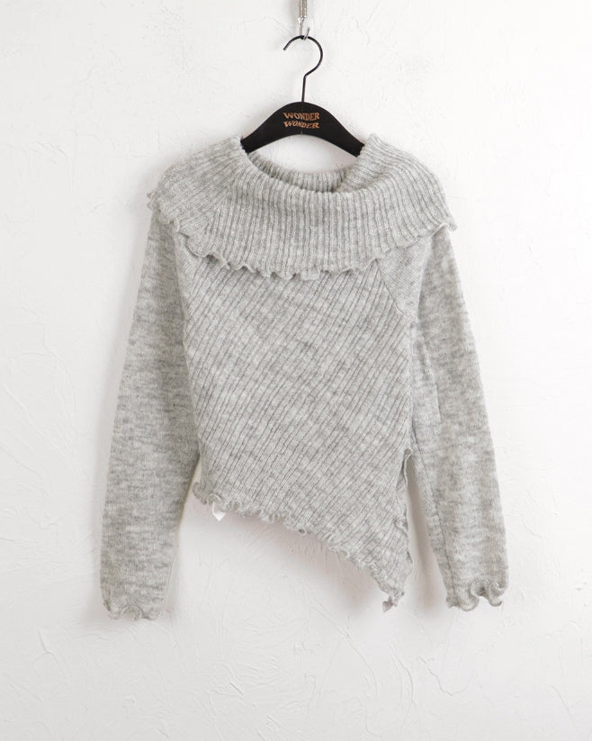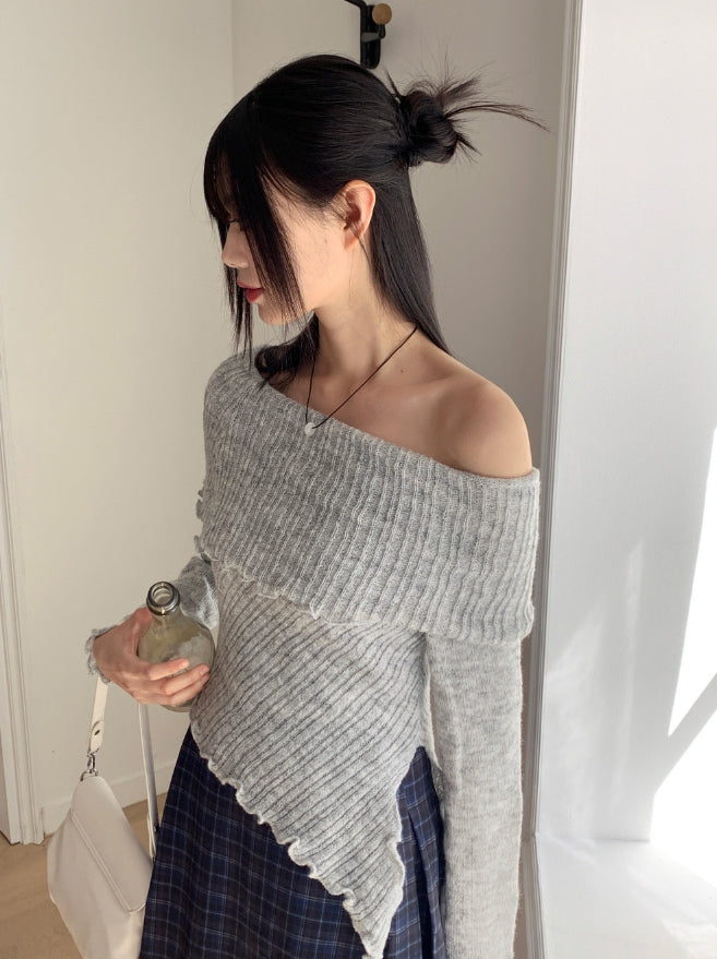 ロートンリブダイアゴナルオフショルダー長袖ニット