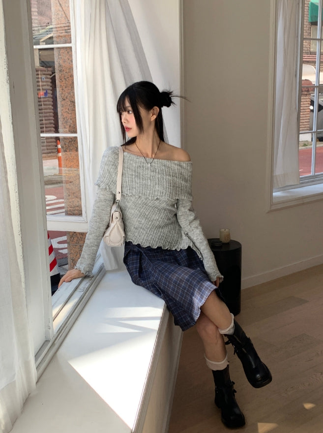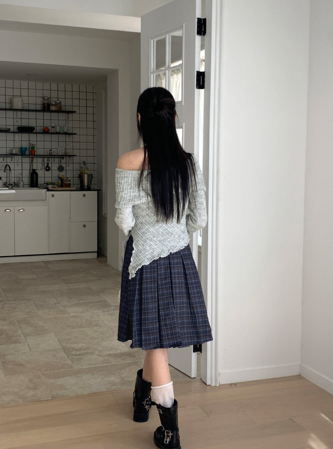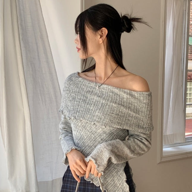 Lawton ribbed diagonal off-shoulder long sleeve knit