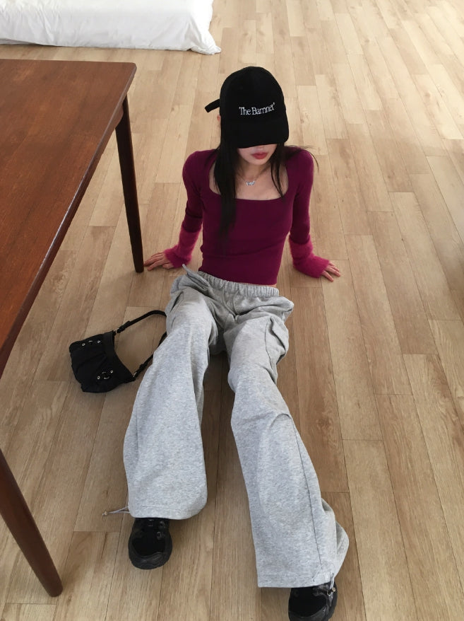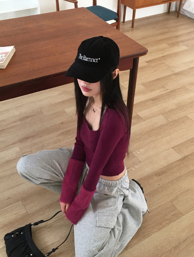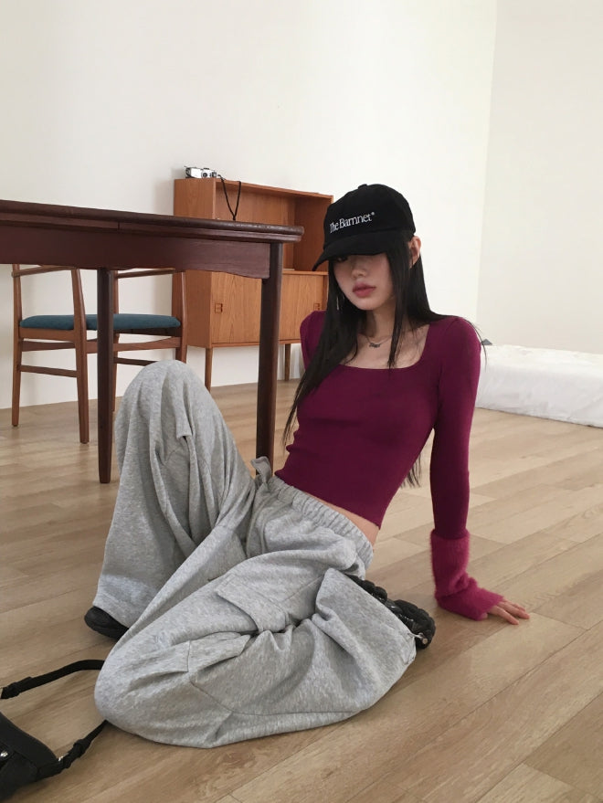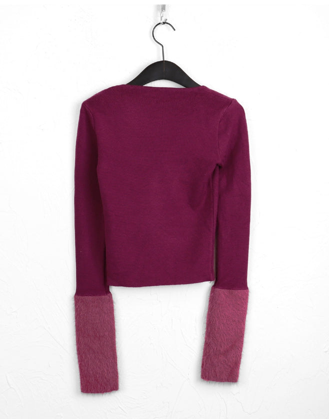 Leman angora fur color matching square neck knit