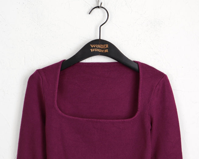 ルマンアンゴラファーカラースクエアネックニット