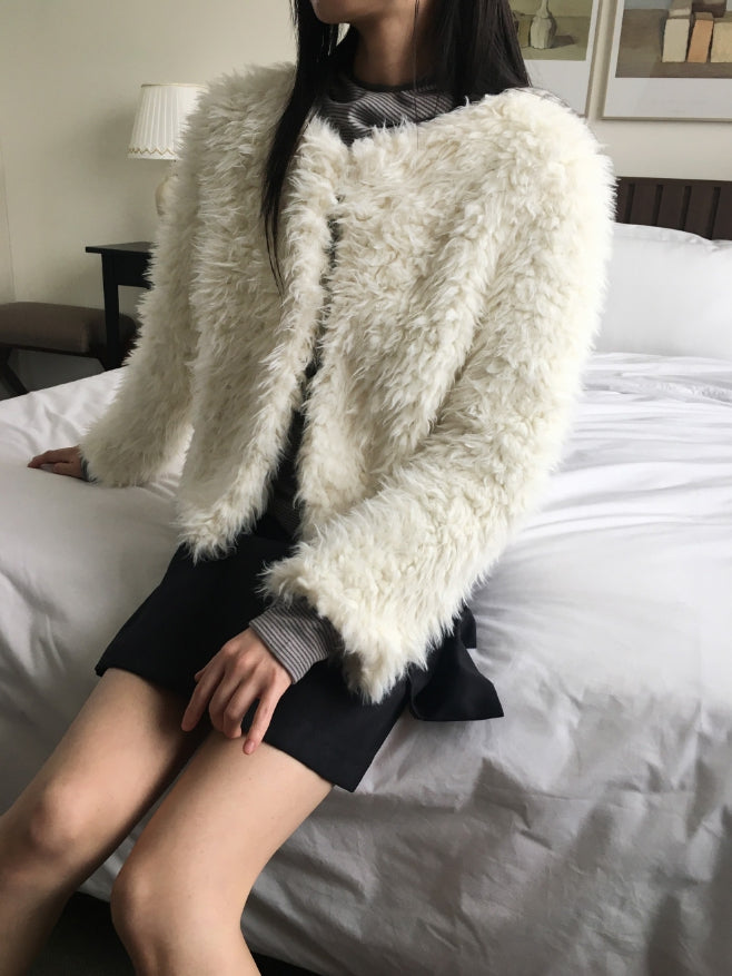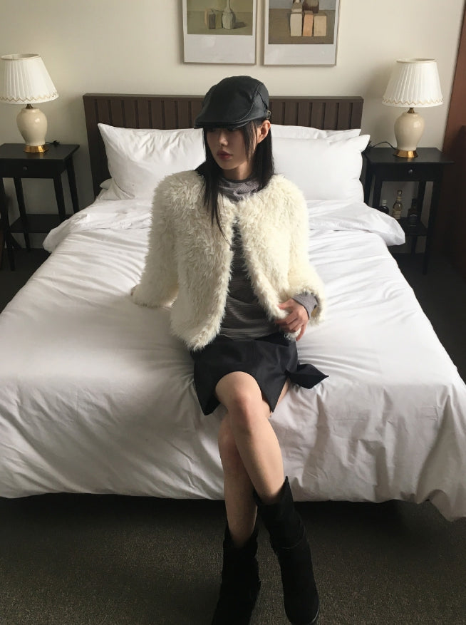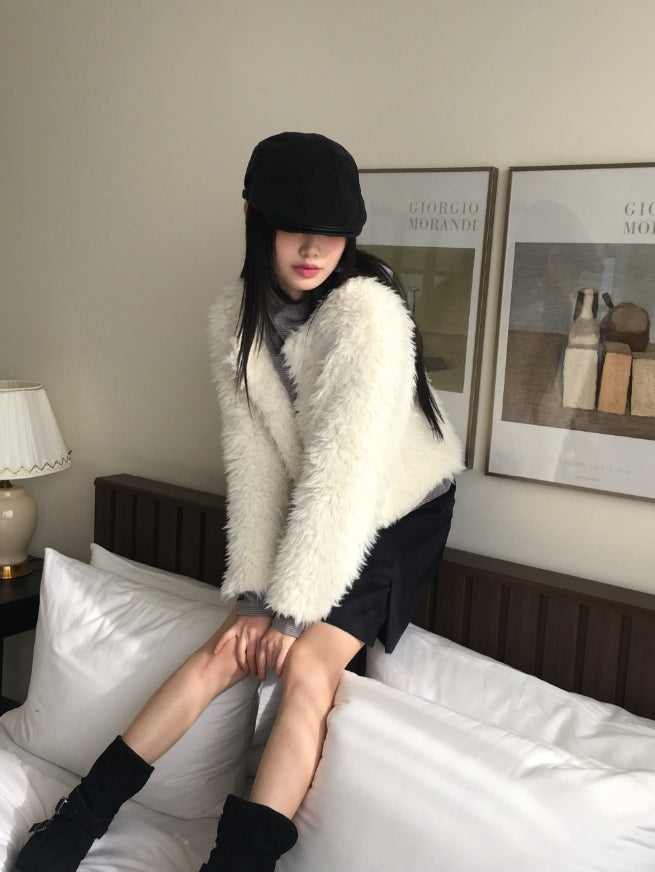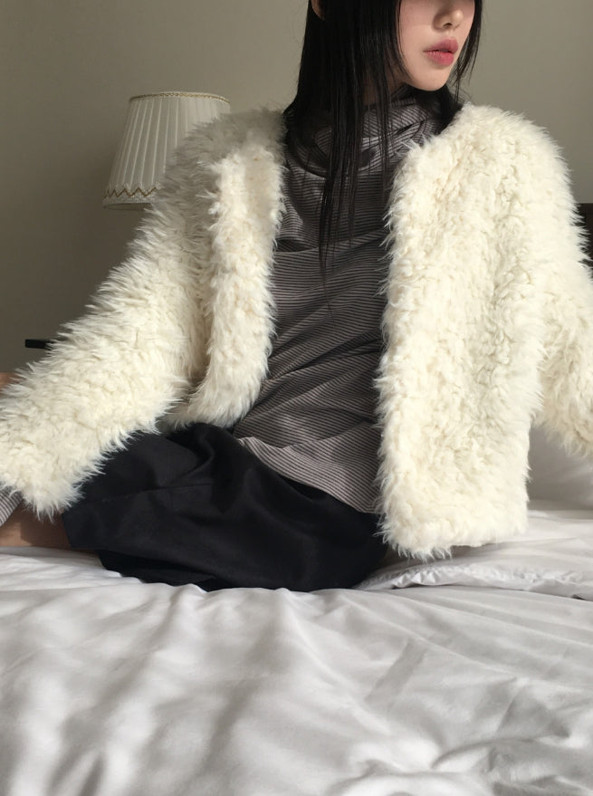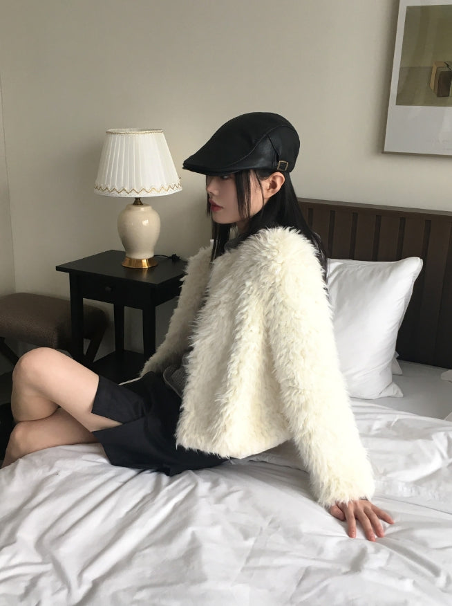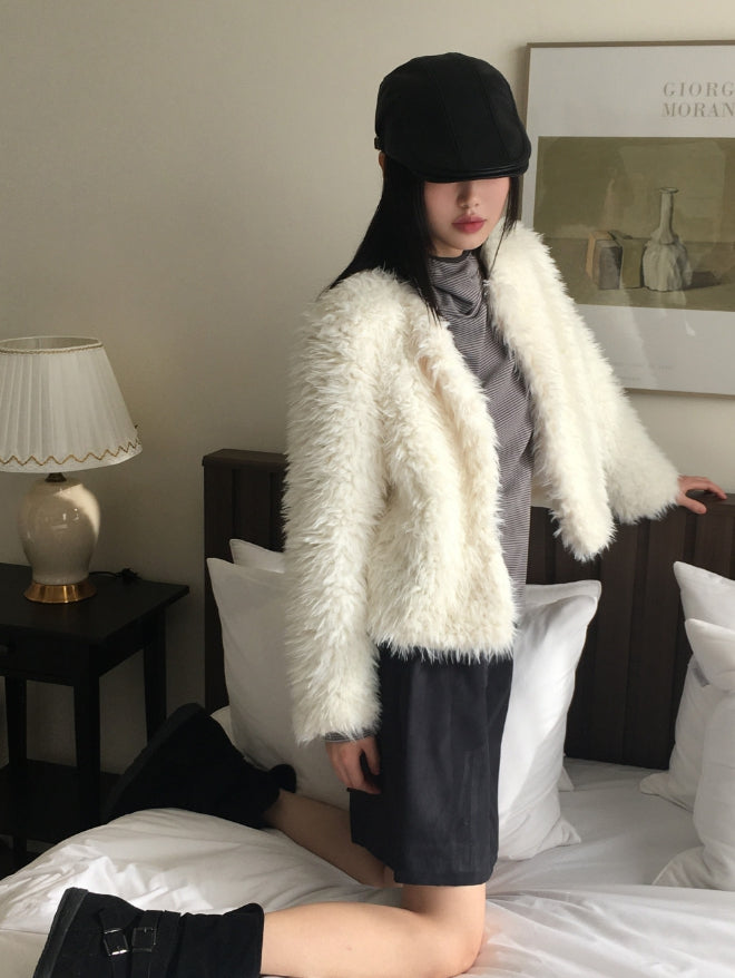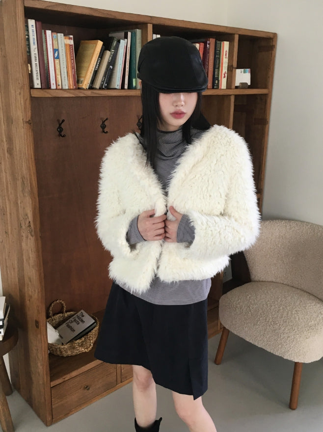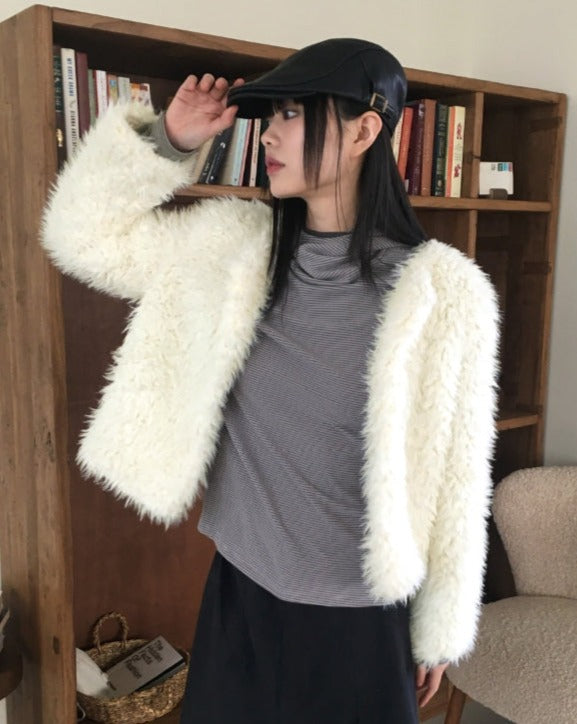 Lens Quilted Eco Fur Long Sleeve Jacket