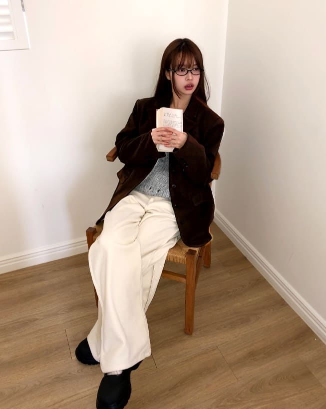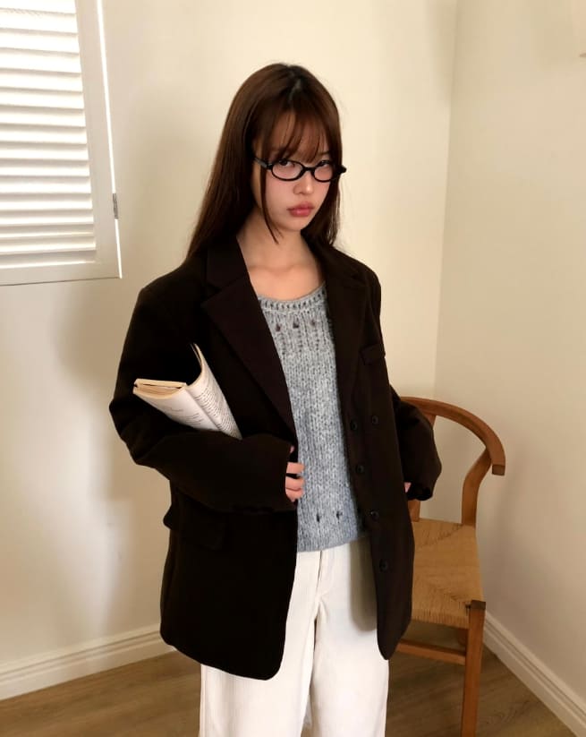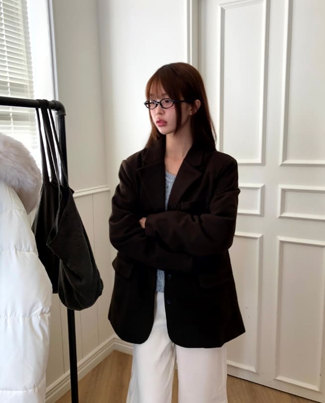 レオンツーボタンカラーポケットルーズフィットブレザージャケット