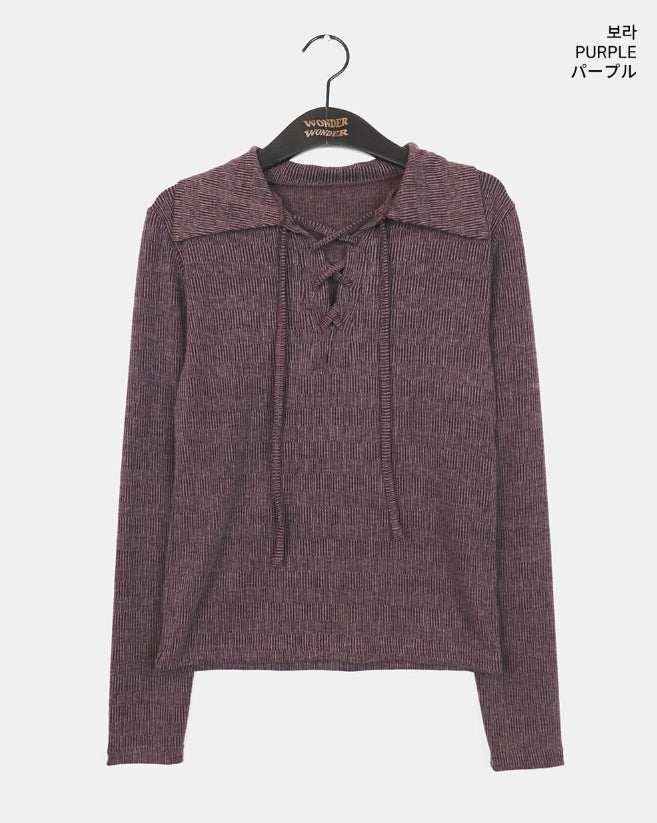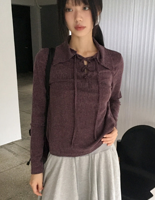 レティルヒッピーベルベットボカシアイレット襟付きTシャツ