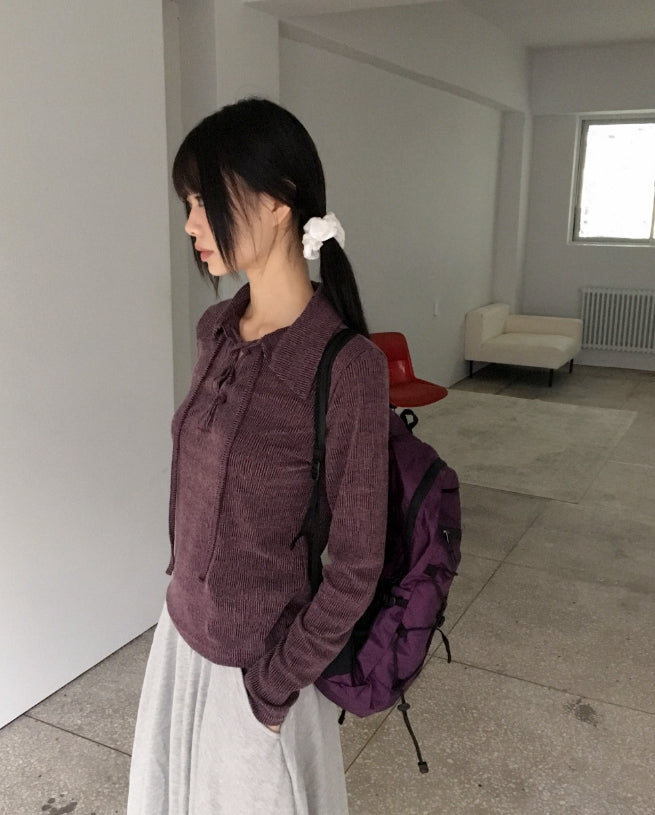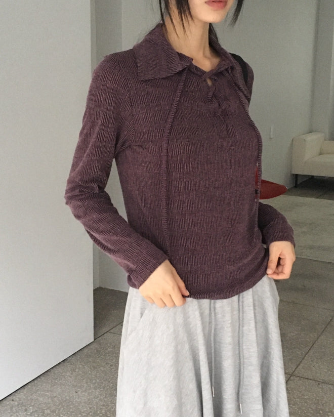 Letil Hippie Velvet Bokashi Eyelet Collar T-Shirt