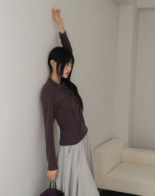 LeTil Hippie Velvet Gradation Eyelet Collar T-shirt