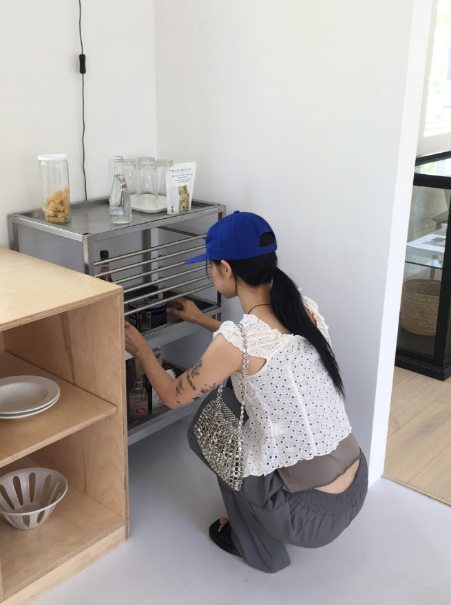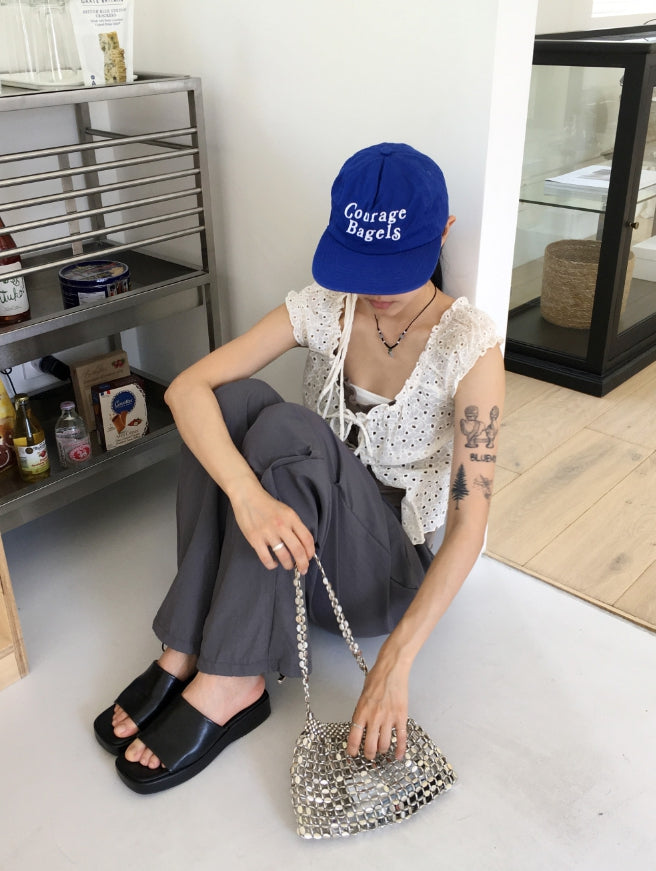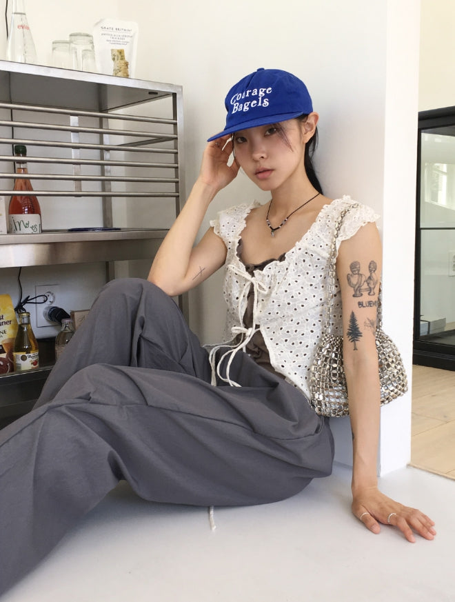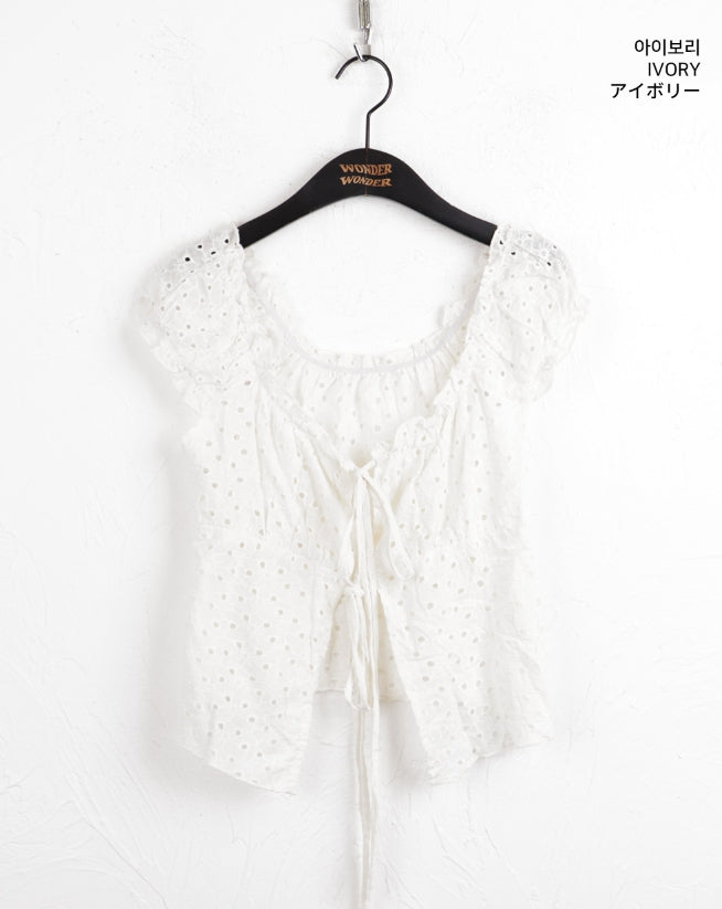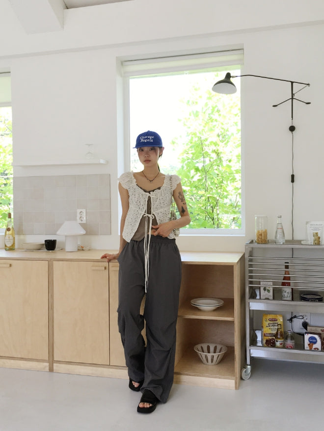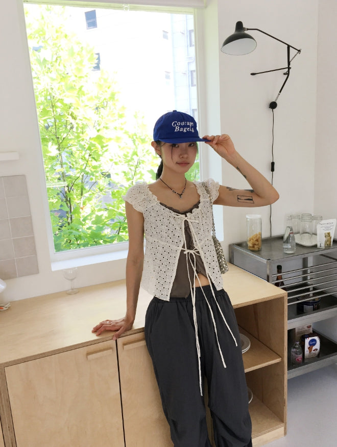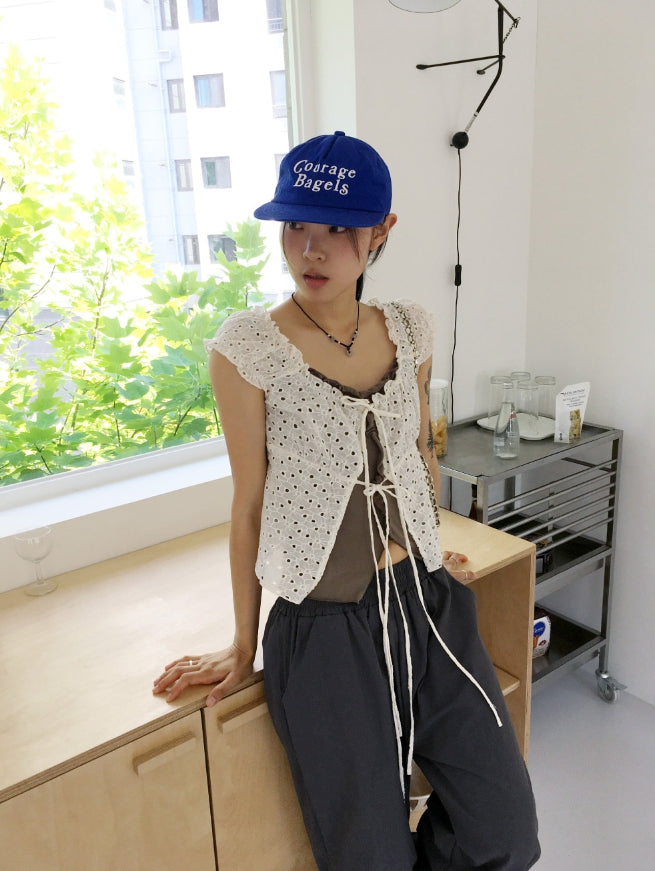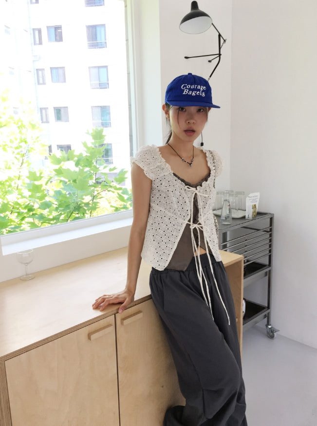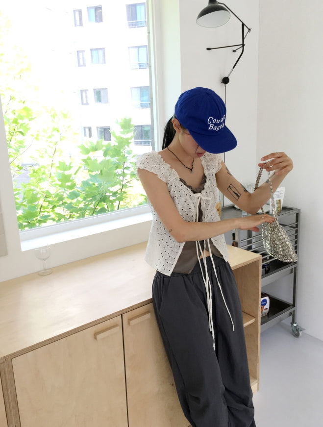 ルザンパンチングリボンストラップ袖なしカーディガン