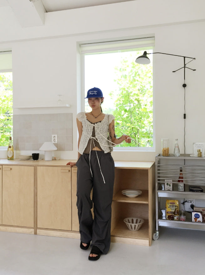 Lezanne Punching Ribbon Strap Sleeveless Cardigan