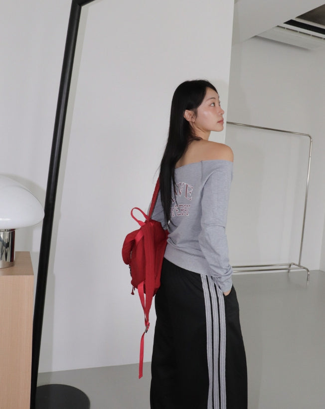 Linbu 78 Patch Off-Shoulder Pile Sweatshirt