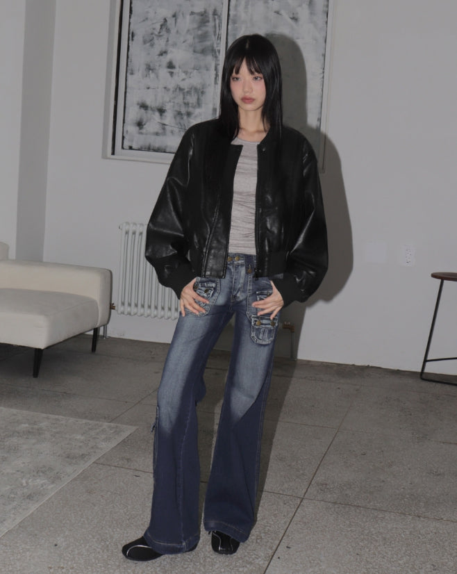 [裏地ファー]ビコムビンテージレザーブルーソンジャケット