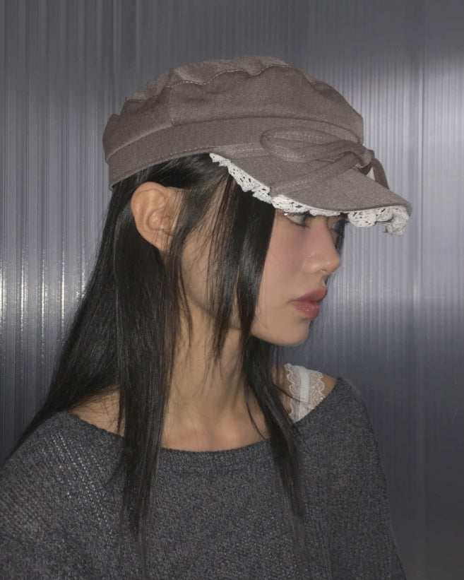 lira lace ribbon madoros hunting cap beret hat