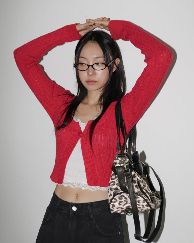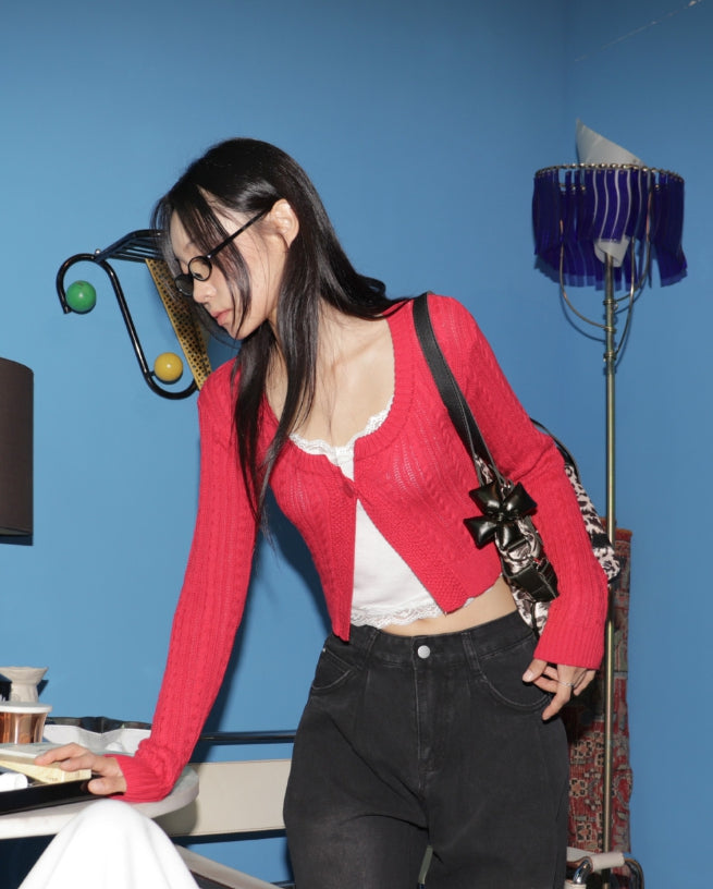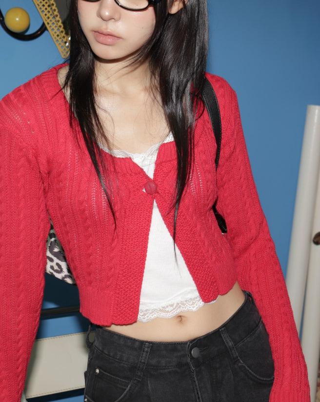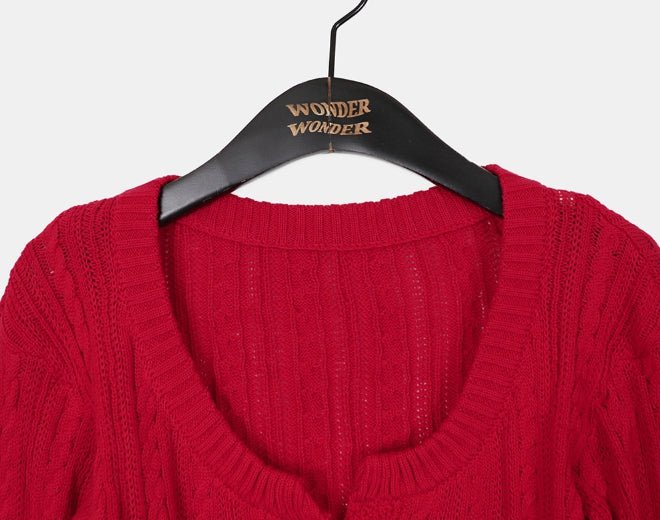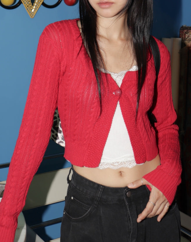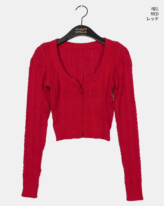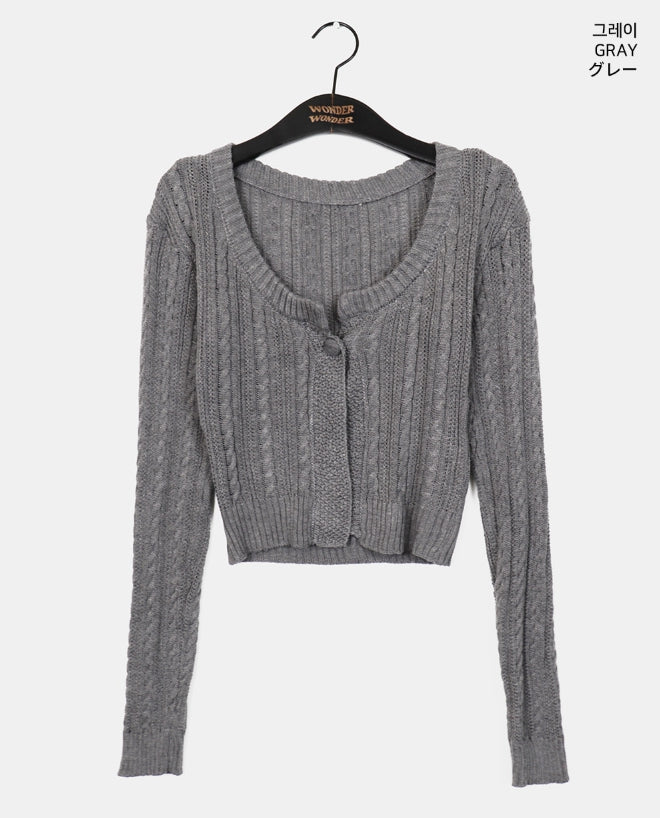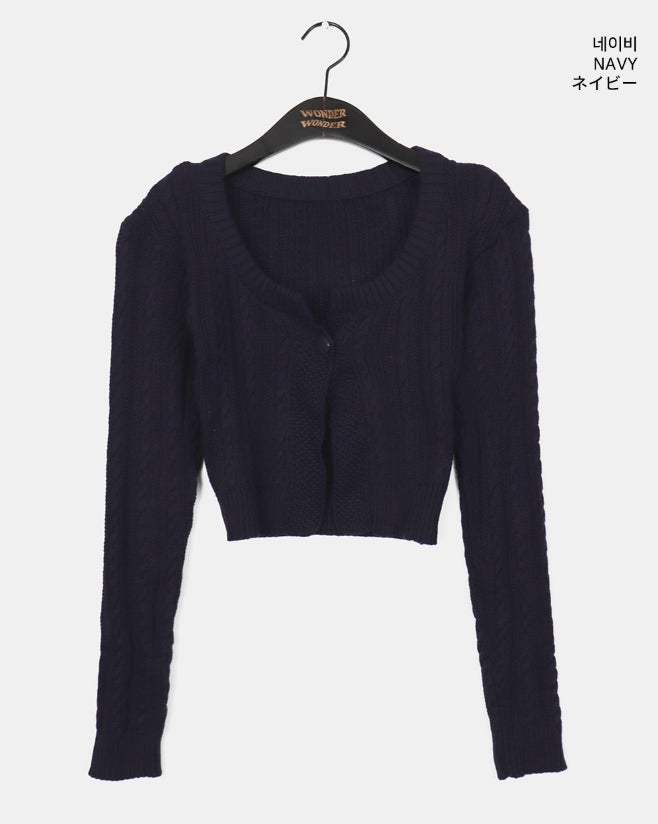 ルノーケーブルワンボタンスリムフィットニットカーディガン