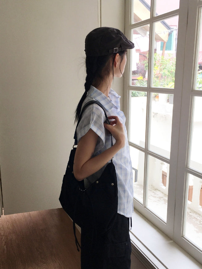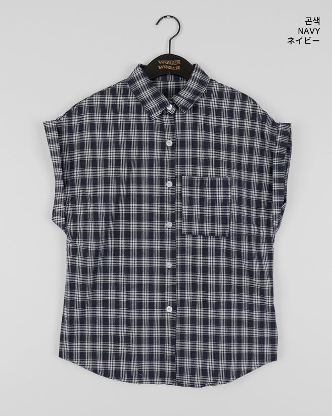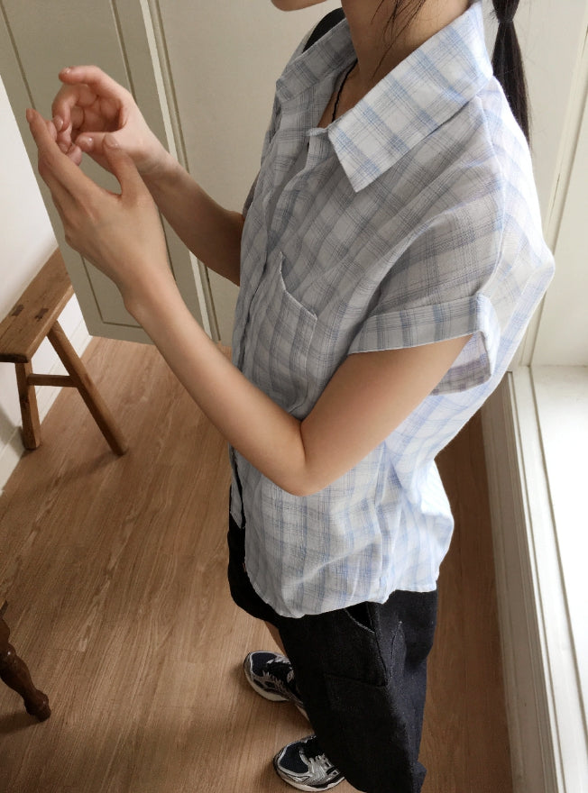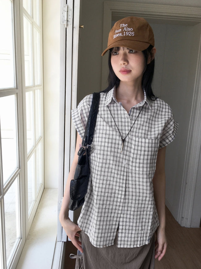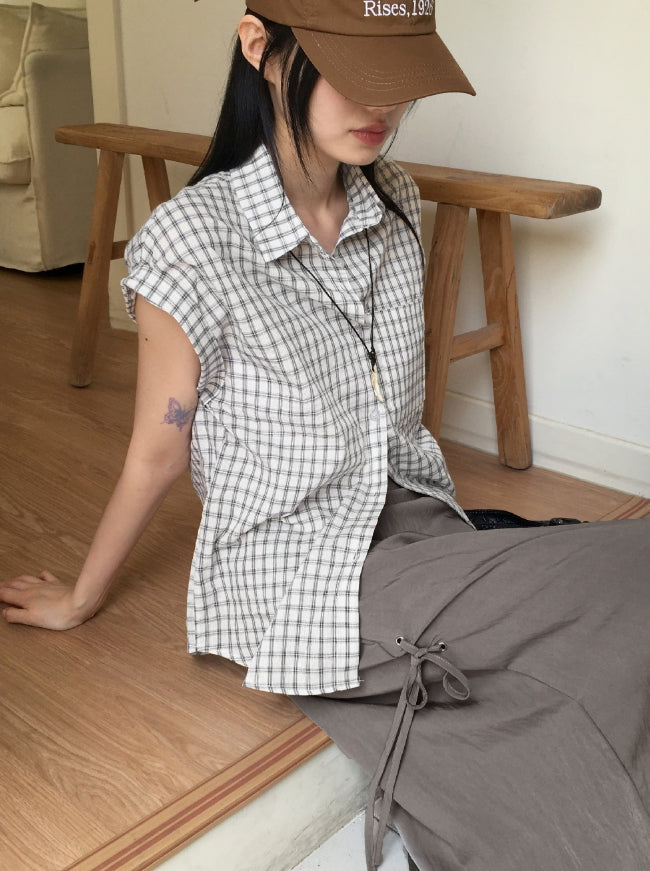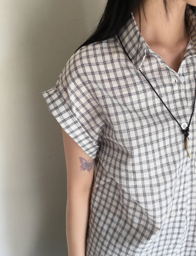 Lupo Linen Roll-Up Pocket Checkered Short Sleeve Shirt