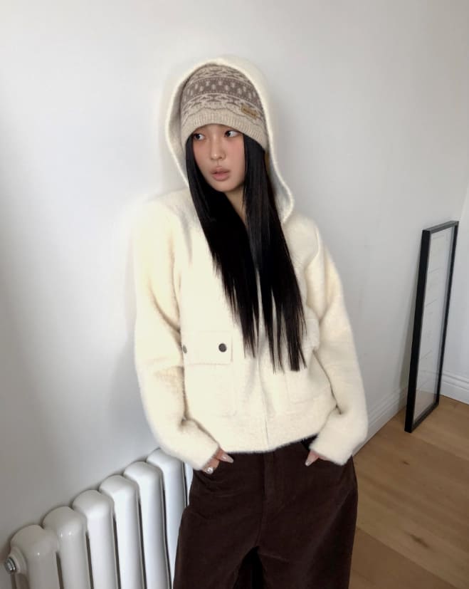 ルユポケットニットフードジップアップ